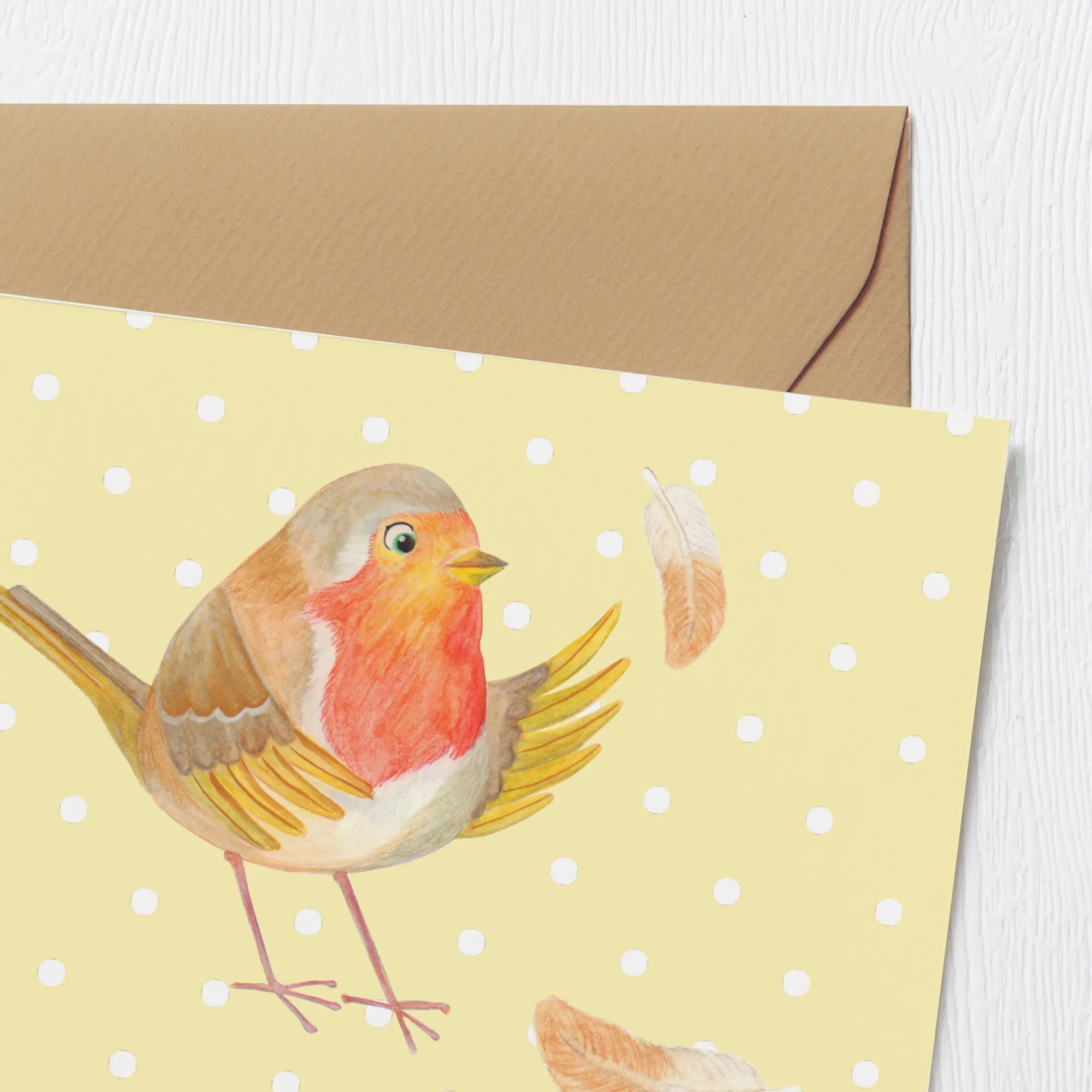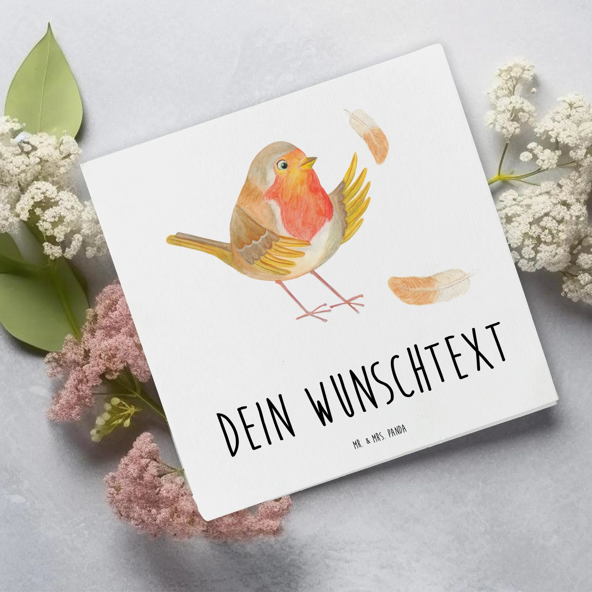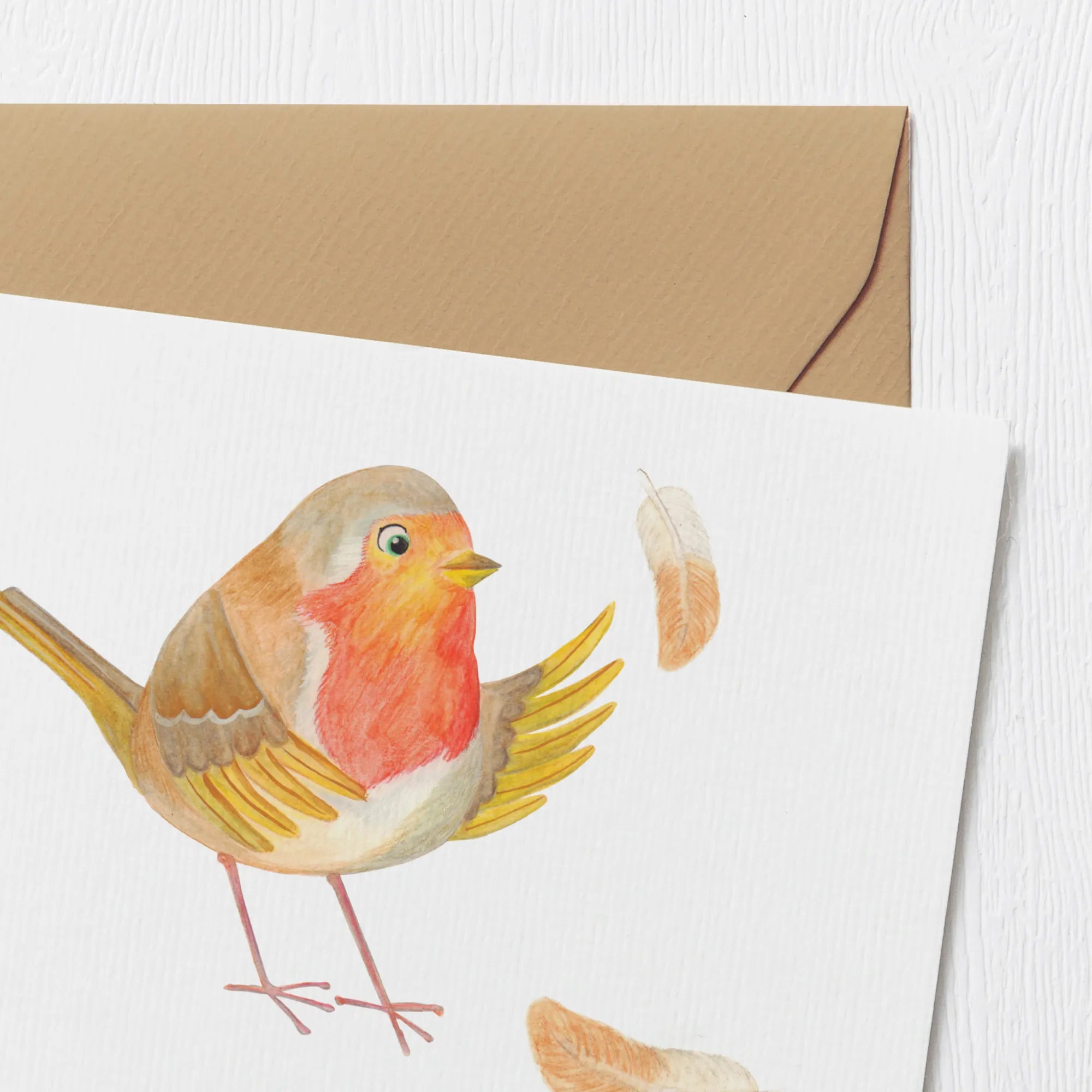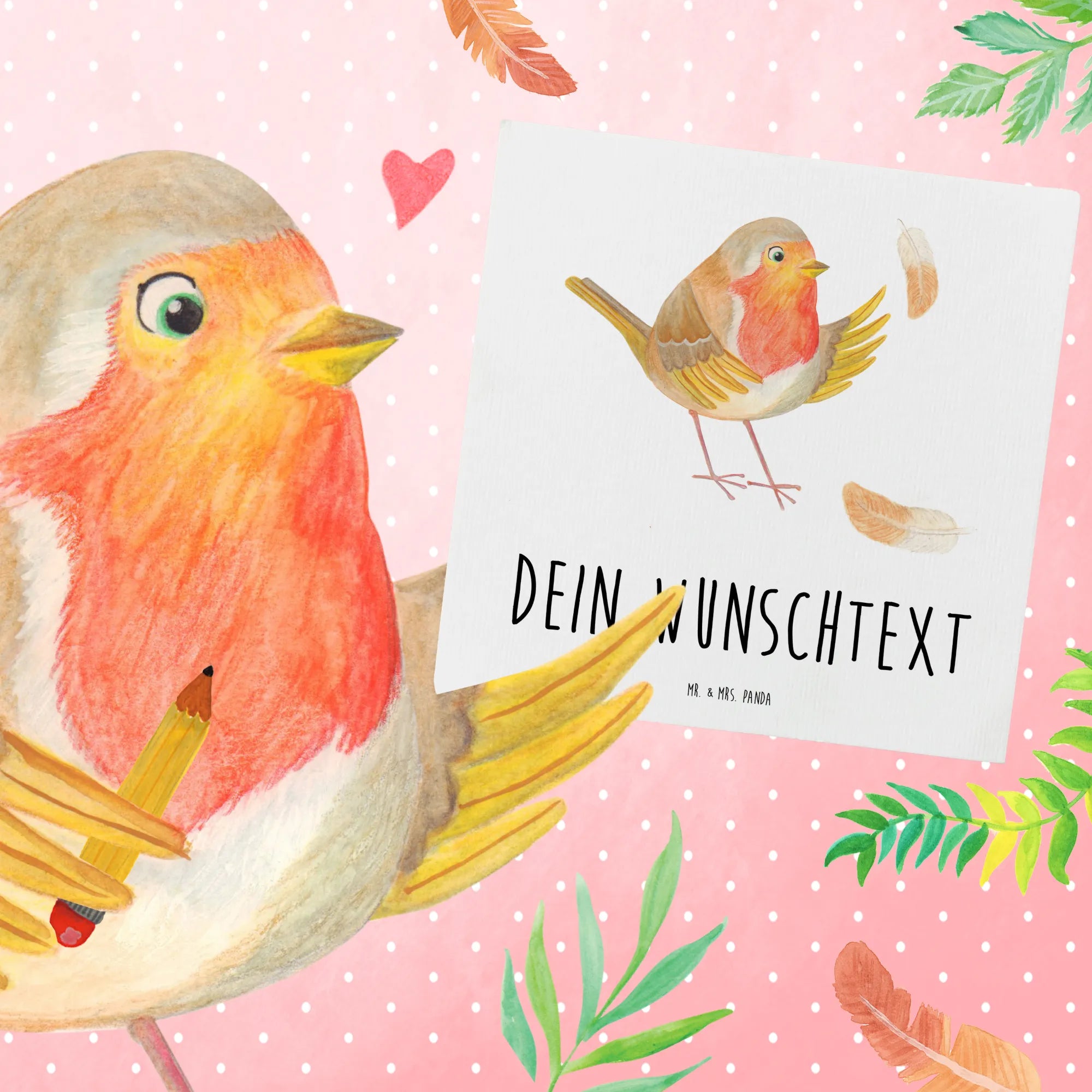 Personalisierte Deluxe Karte Rotkehlchen Federn - Weiß