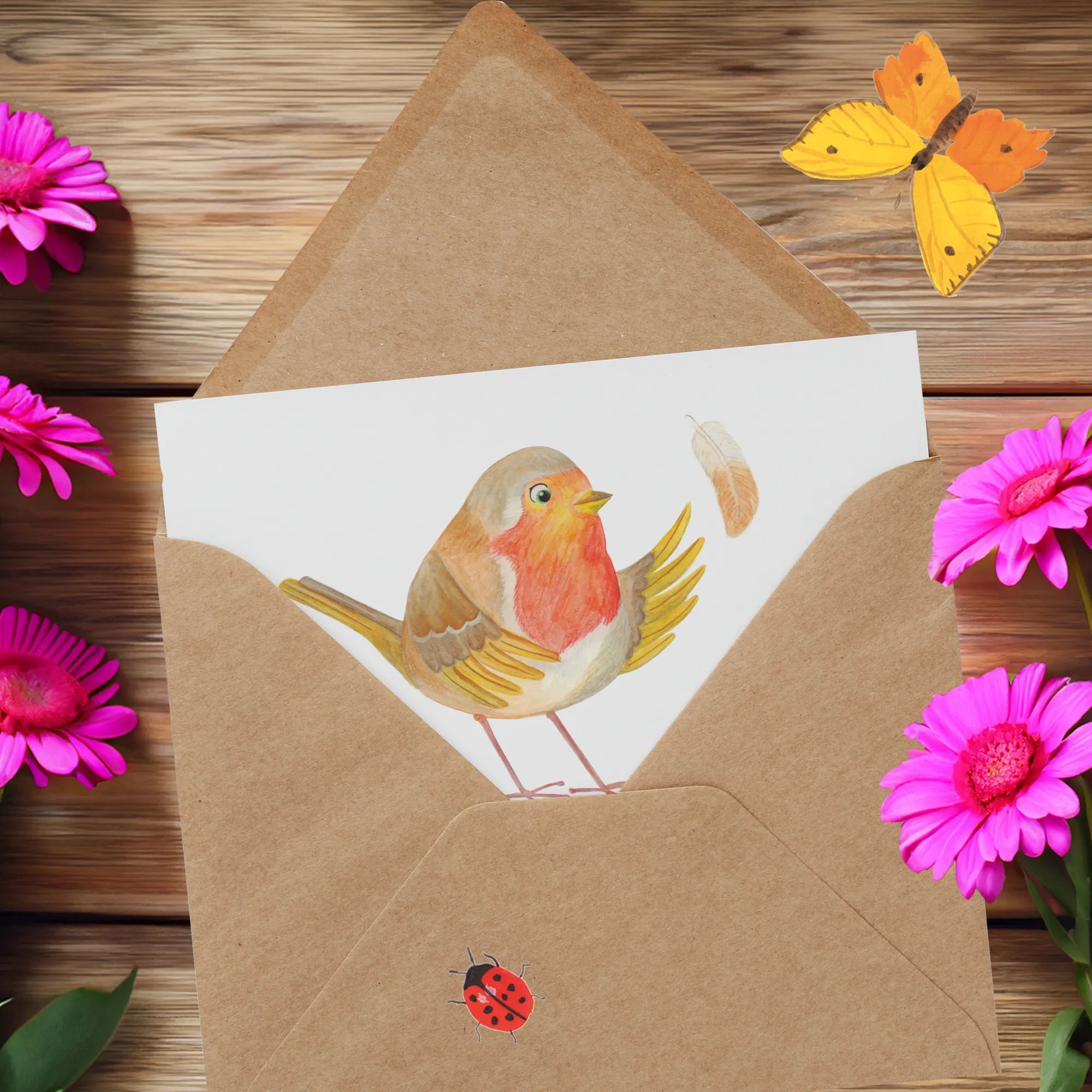 Der edle Umschlag, der im Lieferumfang enthalten ist, rundet das gesamte Geschenk ab und macht deine Botschaft zu einem besonderen Highlight. Verschenke diese liebevolle, personalisierte Karte an jemanden, der dir am Herzen liegt, und bereite ihm oder ihr eine große Freude. Egal ob für einen Anlass oder einfach nur so – das Rotkehlchen mit Federn wird immer ein Lächeln auf die Lippen zaubern. Mach die Welt ein Stückchen schöner und verschenke Freude mit dieser einzigartigen Karte von Mr. & Mrs. Panda!