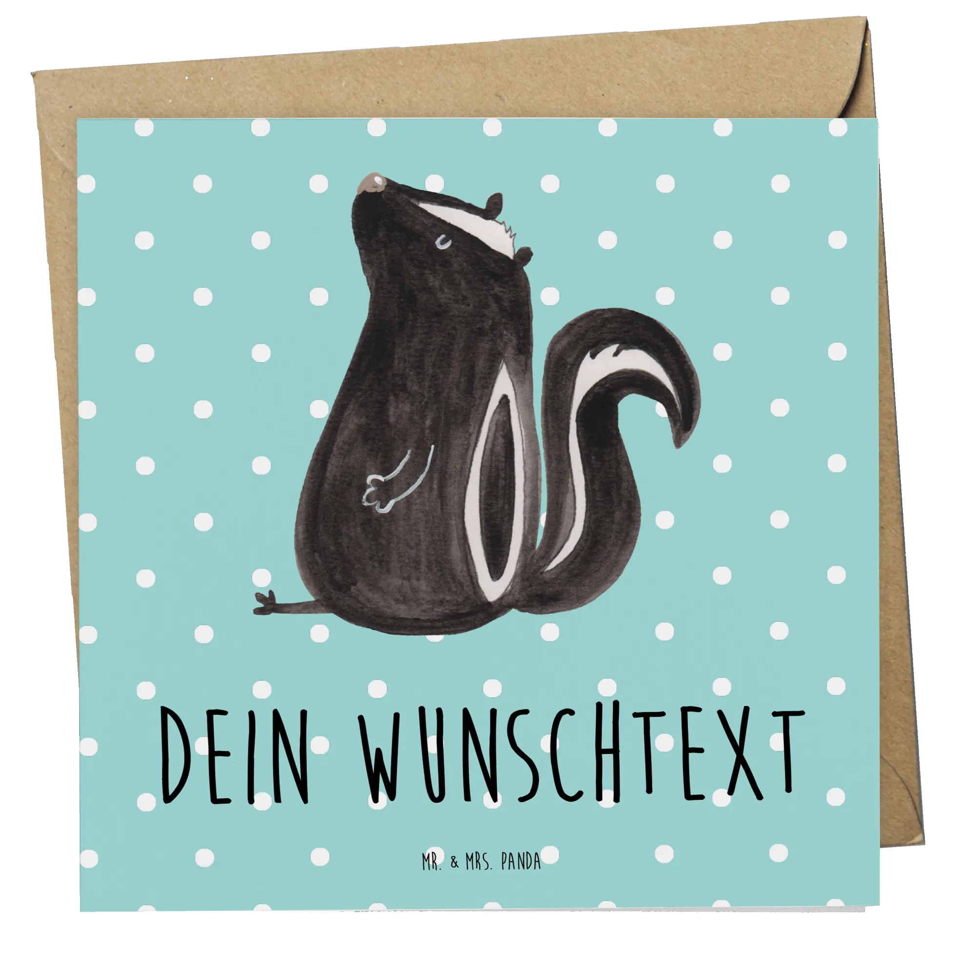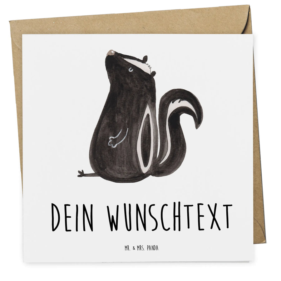 Die personalisierte Deluxe Karte mit dem niedlichen Motiv "Stinktier sitzend" aus der Stinktier-Kollektion von Mr. & Mrs. Panda ist das perfekte Geschenk für viele Anlässe! Egal, ob du eine Einladung zur Geburtstagsfeier gestalten, Glückwünsche zur Hochzeit übermitteln oder einfach nur einen lieben Gruß senden möchtest – diese Karte ist immer eine wunderbare Wahl.
