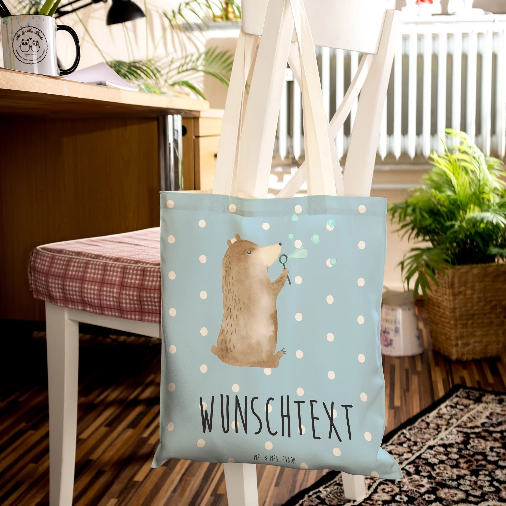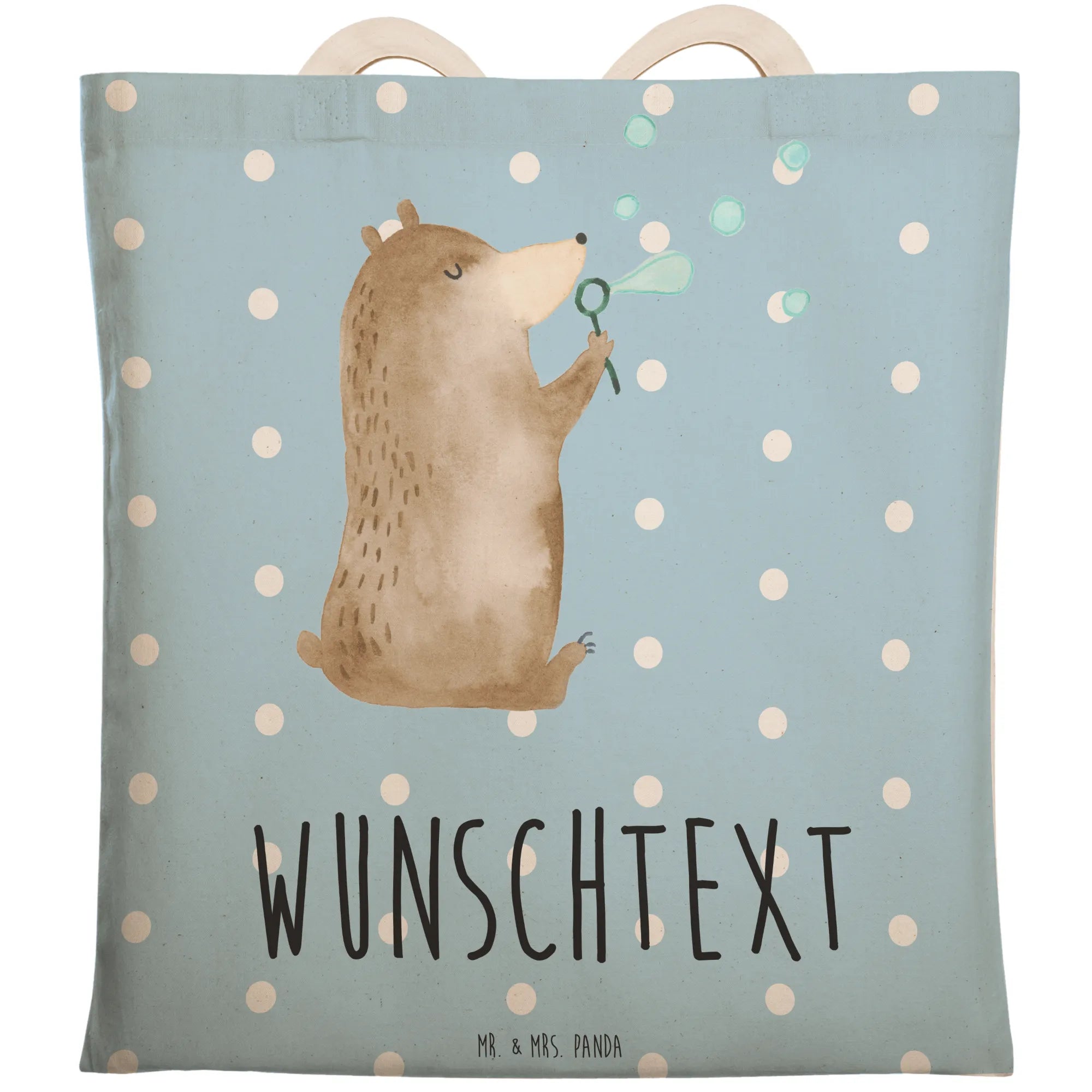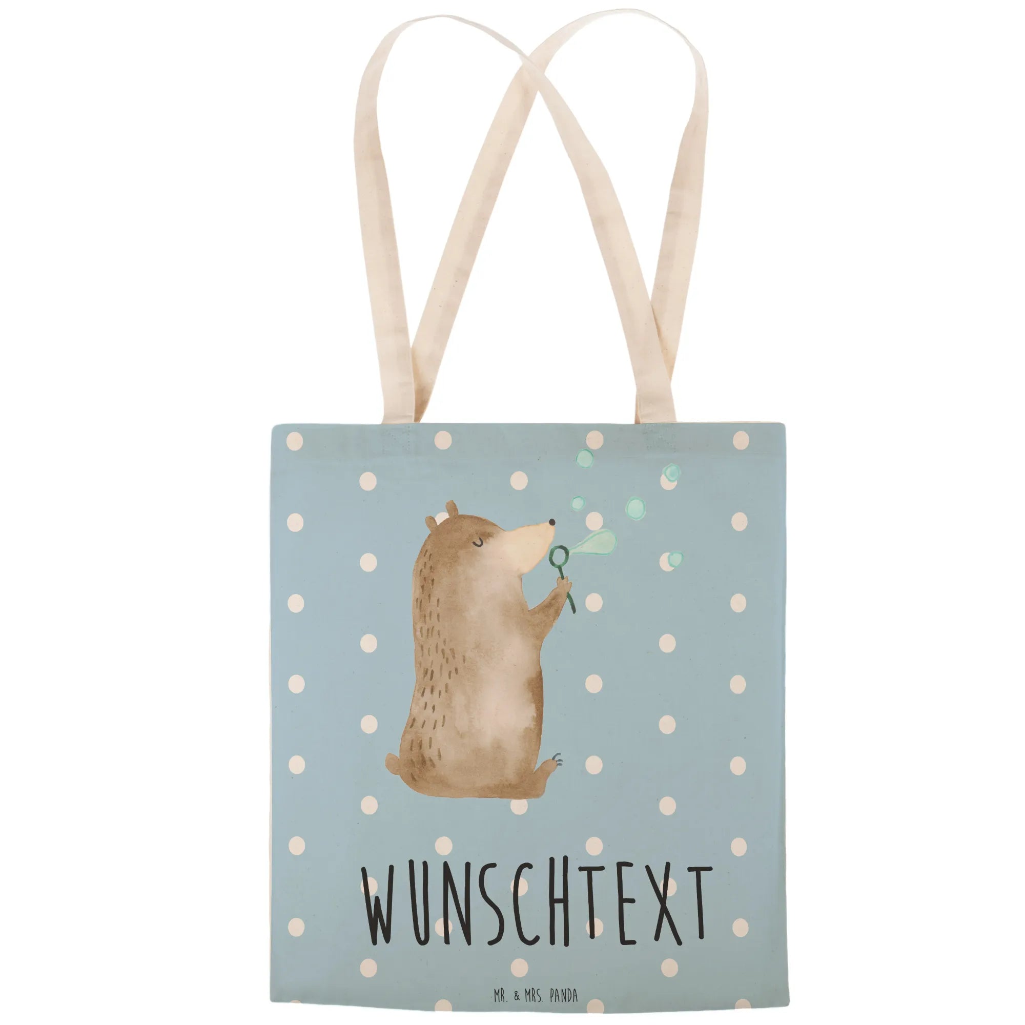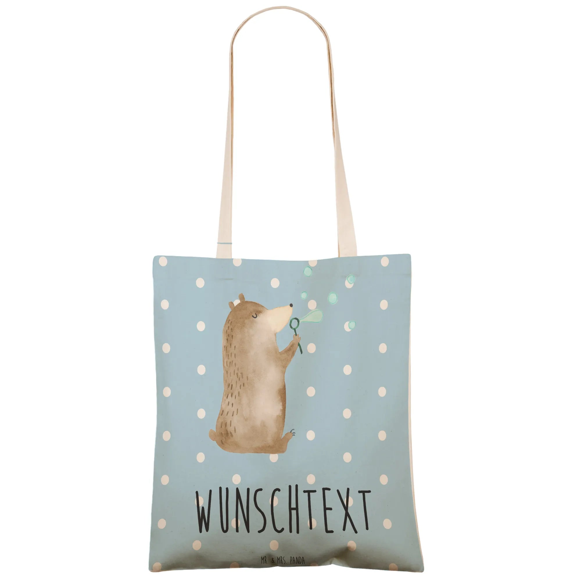 Verwöhne dich selbst oder die Menschen, die dir am Herzen liegen, mit dieser wundervollen, personalisierbaren Einkaufstasche von Mr. & Mrs. Panda! Ihr süßes Design und der persönliche Touch machen sie zu einem Geschenk, das immer in Erinnerung bleibt. Pflegehinweis: Wir empfehlen eine lauwarme Handwäsche, um die Farben strahlend und die Qualität der Tasche zu bewahren. Hol dir den Bär nach Hause und lass die Seifenblasen des Glücks in dein Leben fliegen!