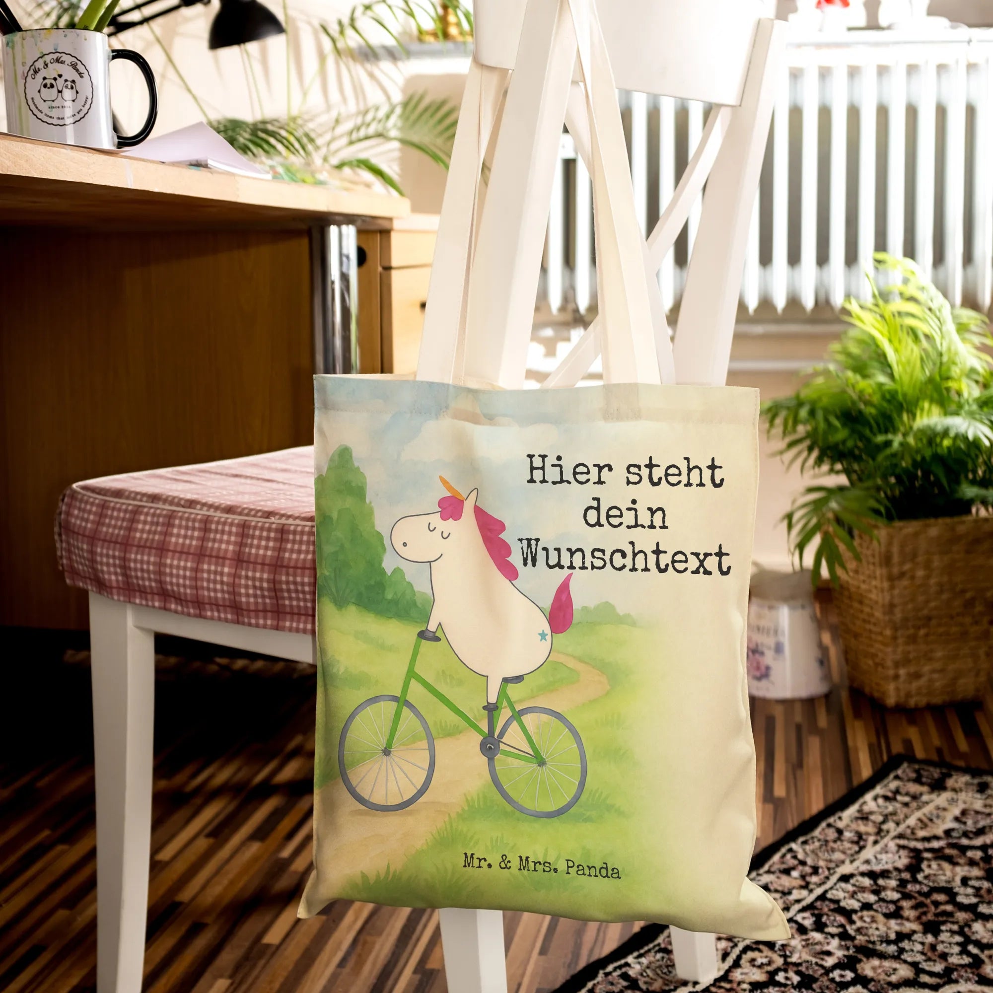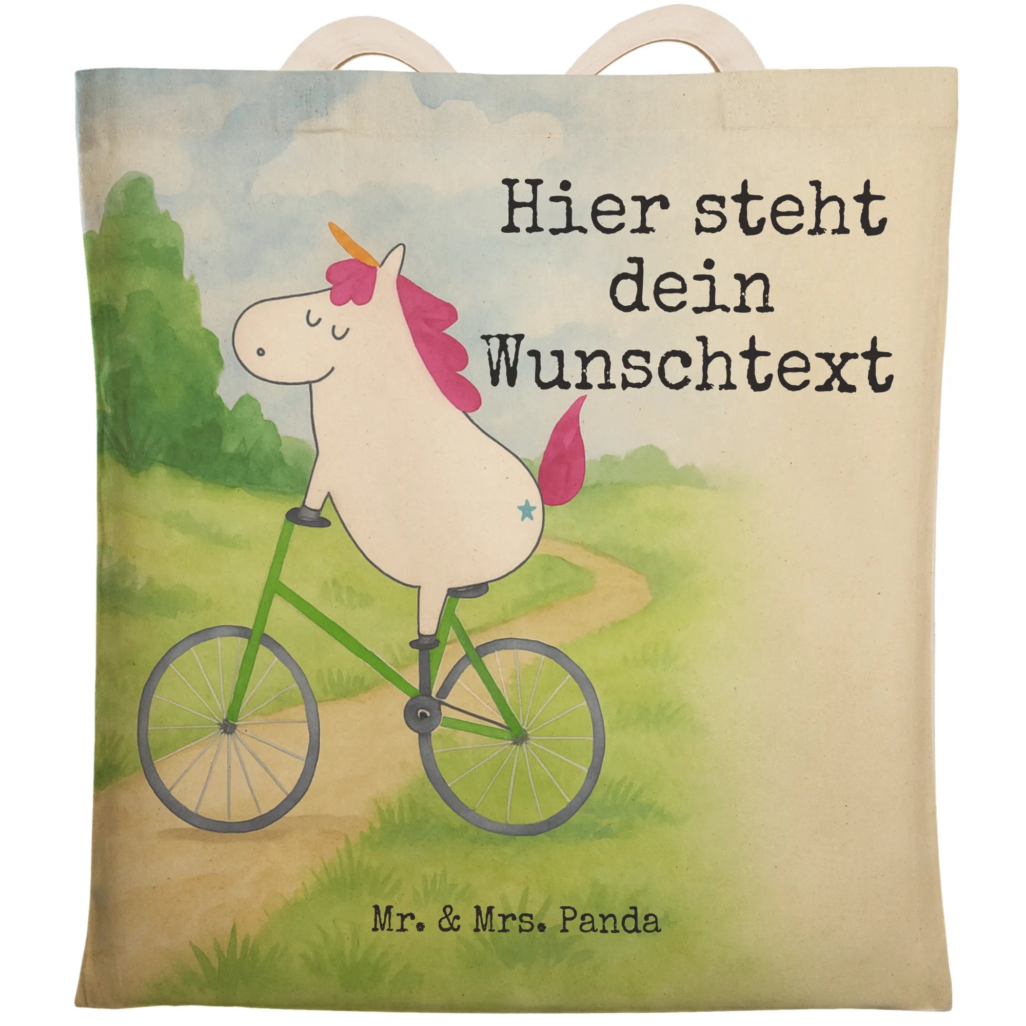 Personalisierte Einkaufstasche Einhorn Radfahrer Design