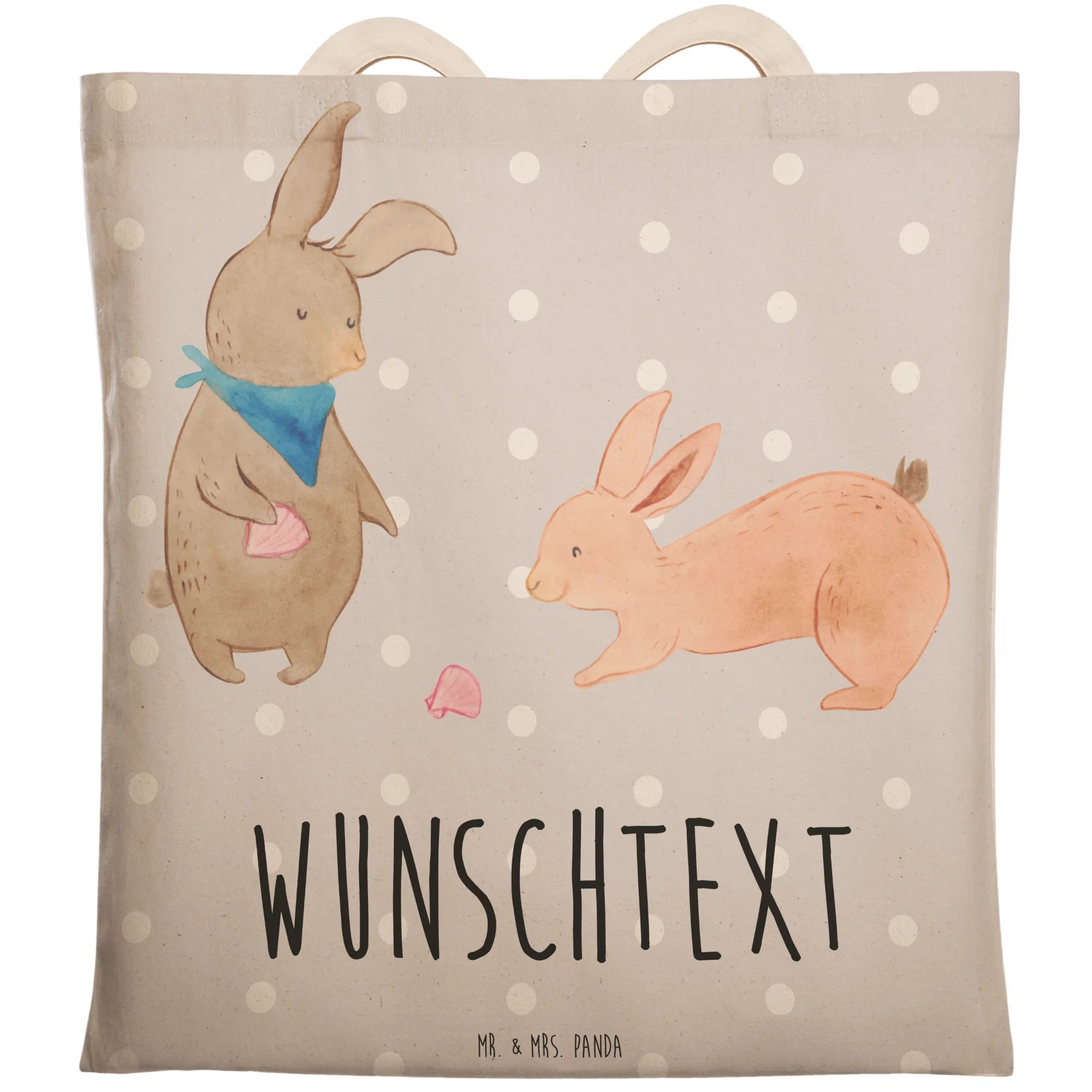 Entdecke die perfekte Kombination aus Stil und Persönlichkeit mit unserer personalisierten Einkaufstasche mit dem zauberhaften Motiv Hasen Muschel aus der Familien Kollektion von Mr. & Mrs. Panda.