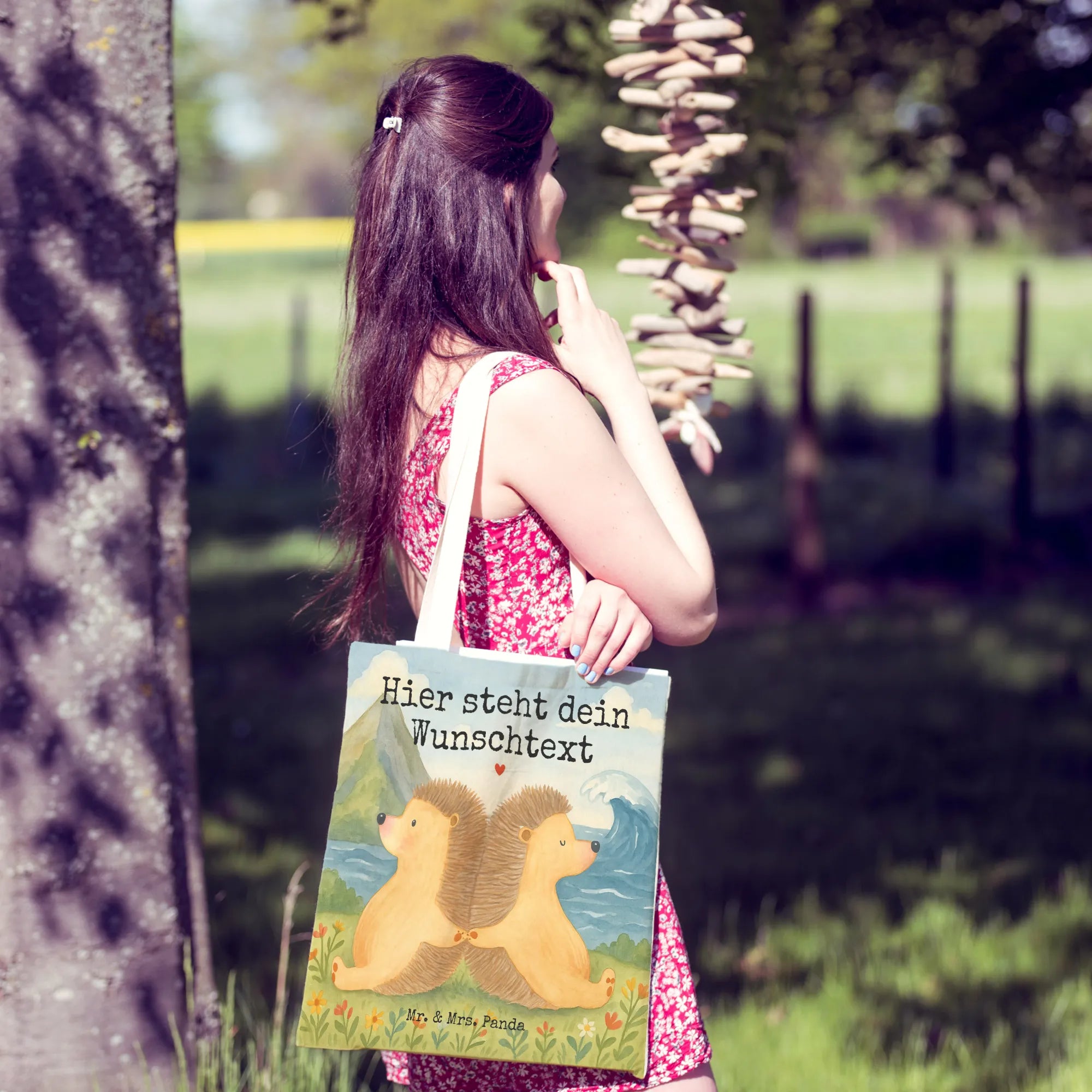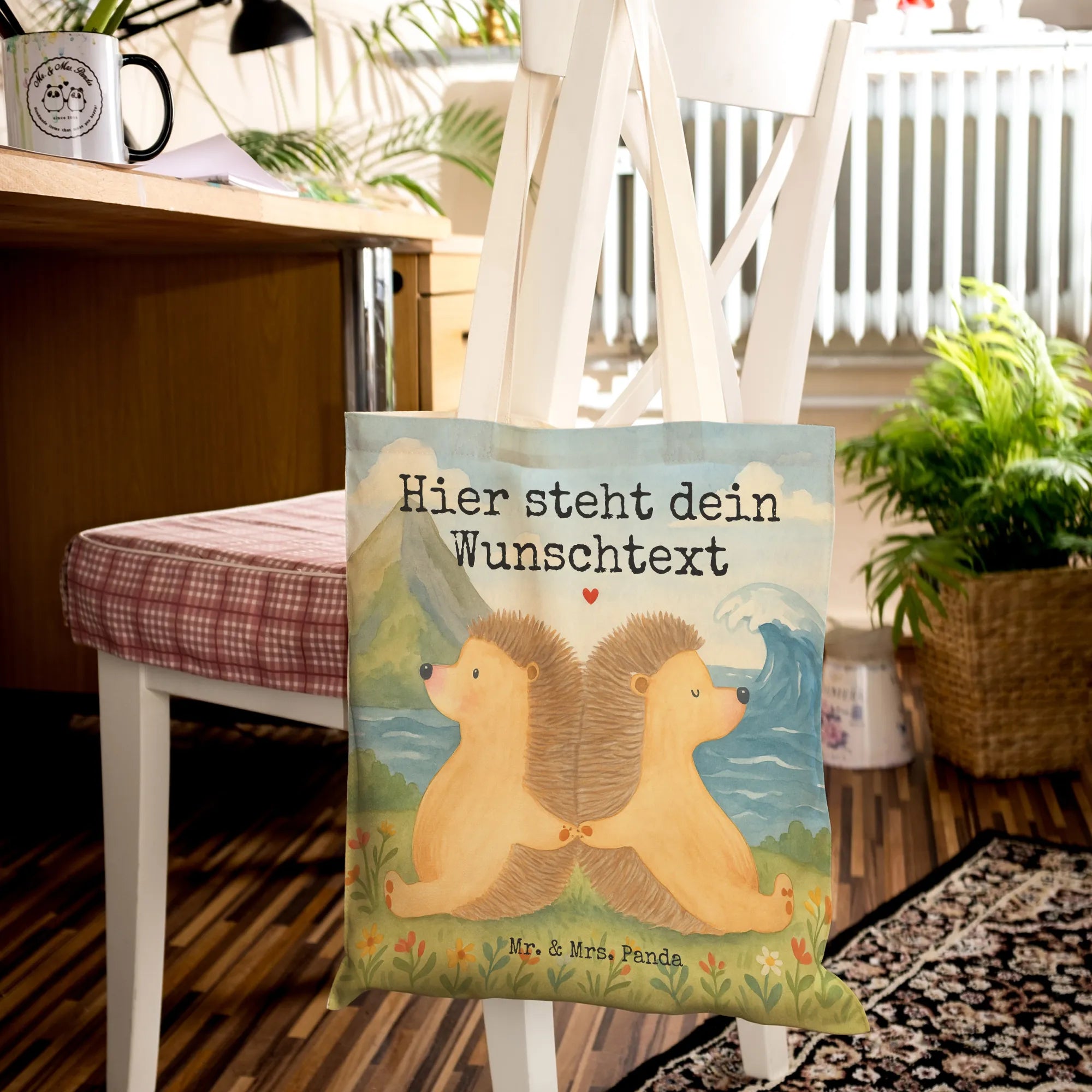 Personalisierte Einkaufstasche Igel händchenhaltend Design