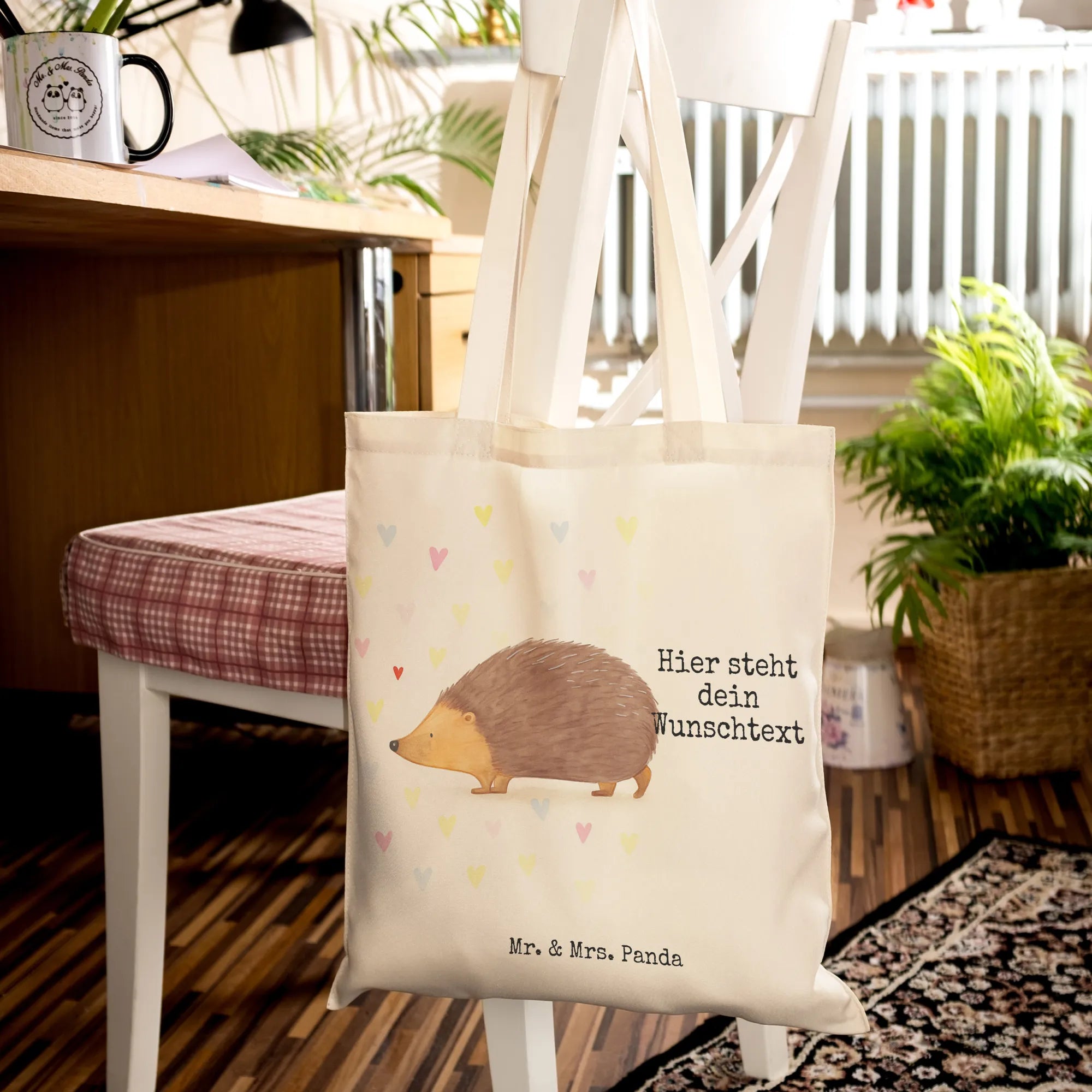 Personalisierte Einkaufstasche Igel Herzen Design