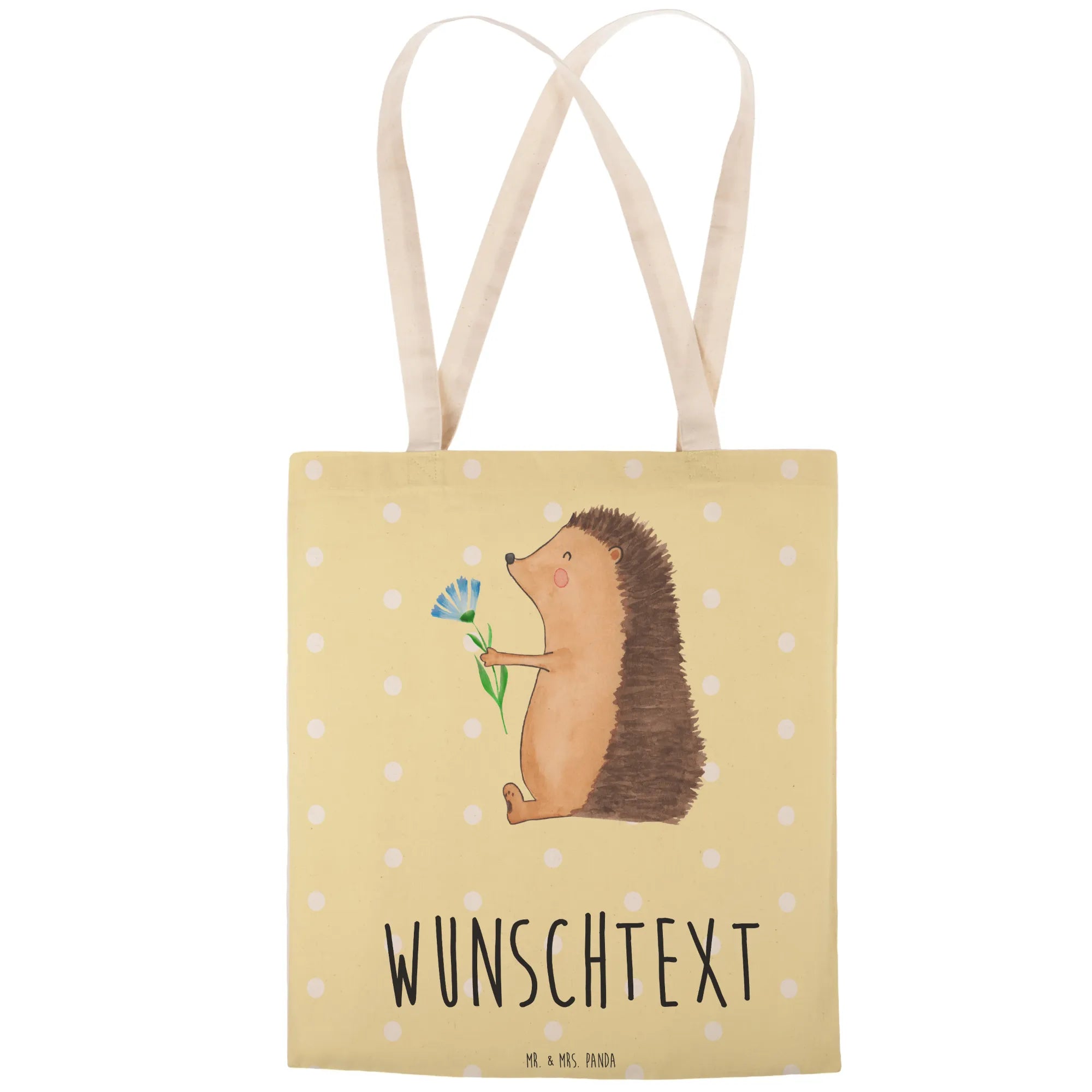 Die personalisierte Einkaufstasche "Igel mit Blume" aus der liebevollen Small World Kollektion von Mr. & Mrs. Panda ist das perfekte Geschenk für jeden Anlass und jeden, der gute Laune verspüren möchte.