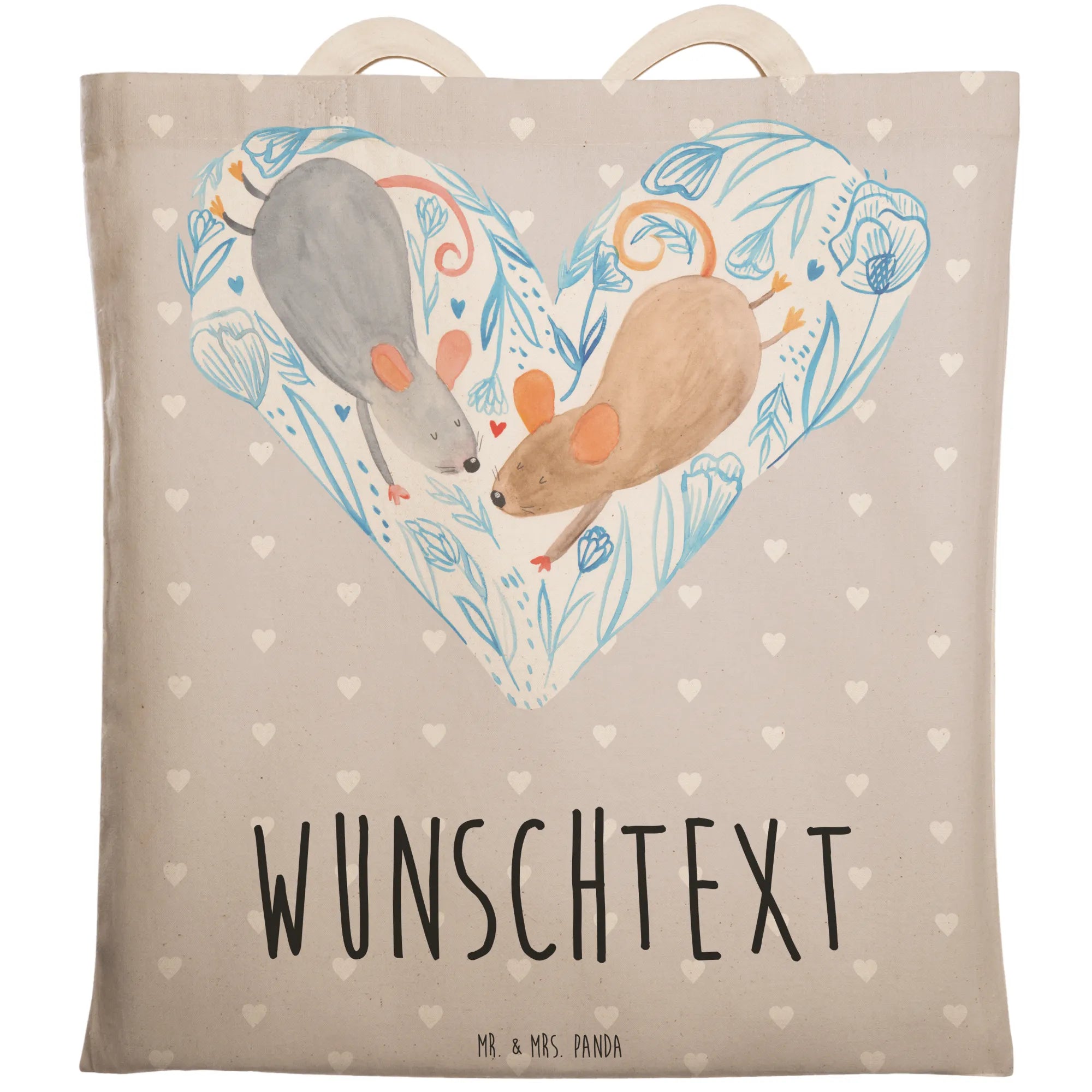 Die personalisierte Einkaufstasche Mäuse Herz von Mr. & Mrs. Panda ist das perfekte Geschenk für Verliebte und Liebesbotschafter! Mit ihrem zauberhaften Design, das zwei süße Mäuse darstellt, die in einem Herz verbunden sind, vermittelt sie die Botschaft: "Wir zwei gegen den Rest der Welt."