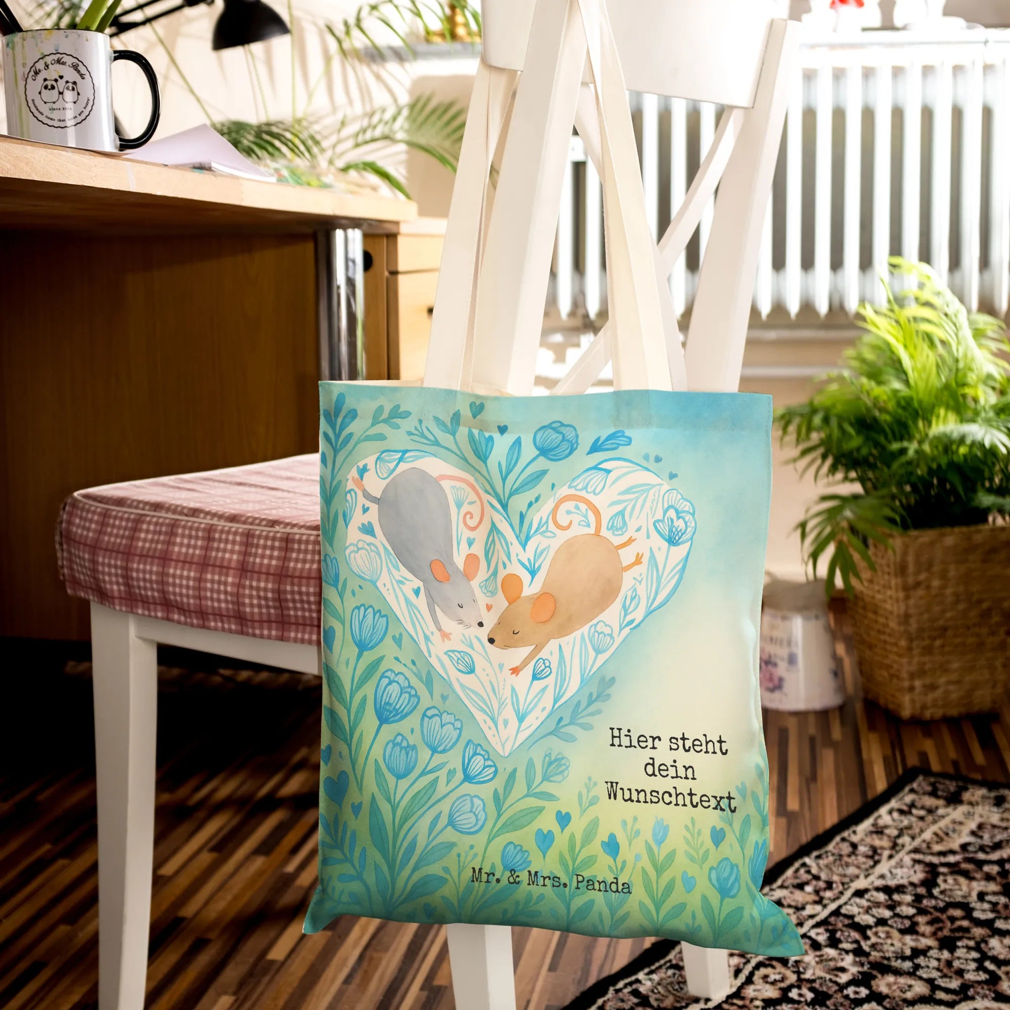 Personalisierte Einkaufstasche Mäuse Herz Design