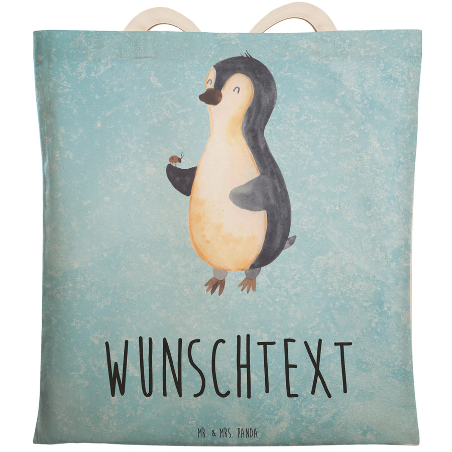 Du suchst nach einem ganz besonderen Geschenk? Dann entdecke unsere personalisierte Einkaufstasche mit dem zauberhaften Pinguin und Marienkäfer aus der exklusiven Pinguin-Kollektion von Mr. & Mrs. Panda!