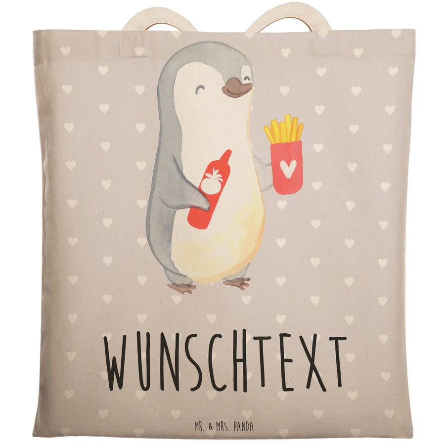 Die personalisierte Einkaufstasche „Pinguin Pommes“ von Mr. & Mrs. Panda ist das perfekte Geschenk für alle, die Liebe und Freude in ihrem Alltag suchen. Diese hochwertige Baumwolltasche ist nicht nur ein praktischer Begleiter für jede Einkaufstour, sondern auch ein liebevolles Liebesgeschenk für Freunde, Partner oder die eigene Ehefrau. Der süße Pinguin, der mit seinen Pommes und einer Flasche Ketchup um die Gunst seines Geliebten wirbt, sorgt ganz sicher für einen schönen Moment.