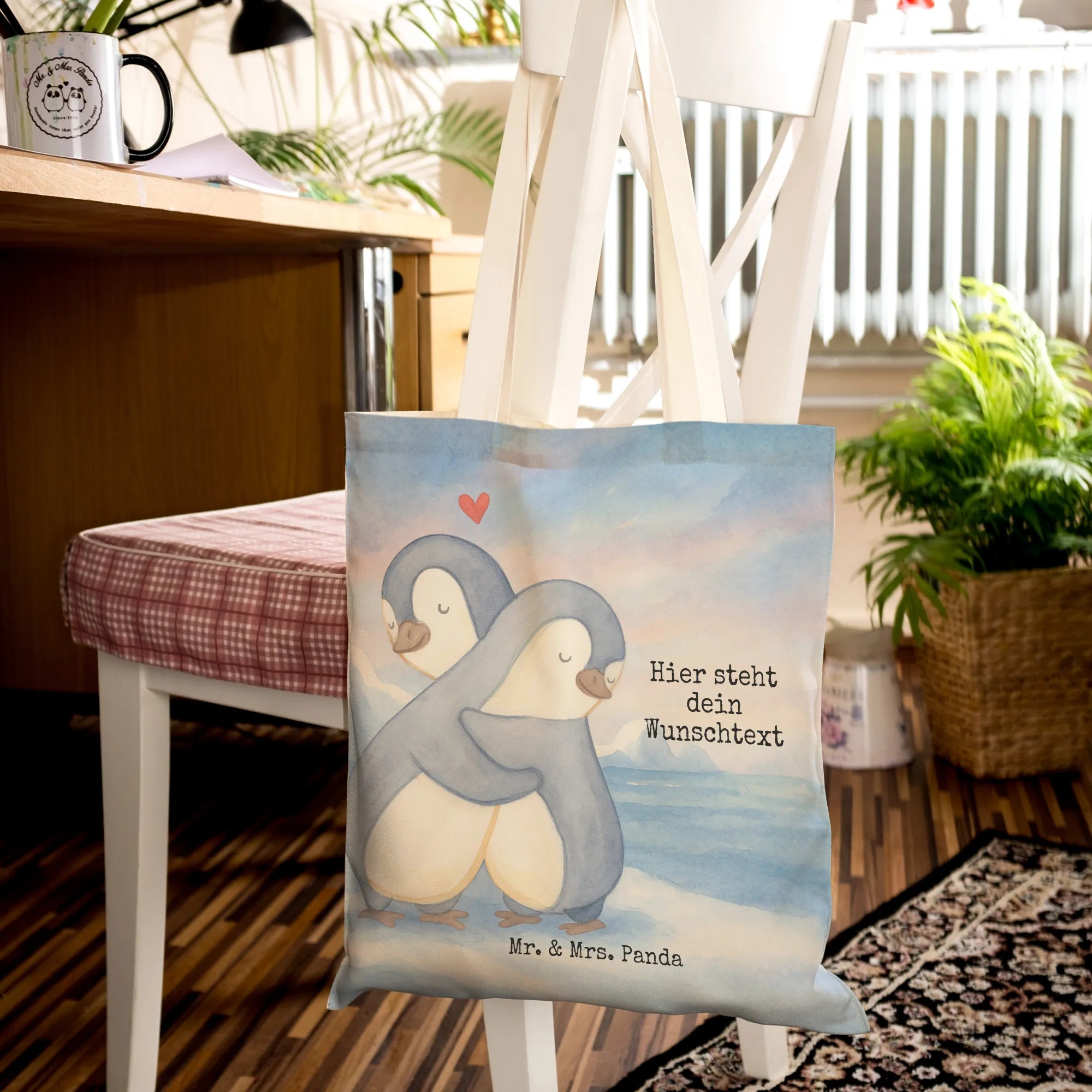 Personalisierte Einkaufstasche Pinguine Kuscheln Design