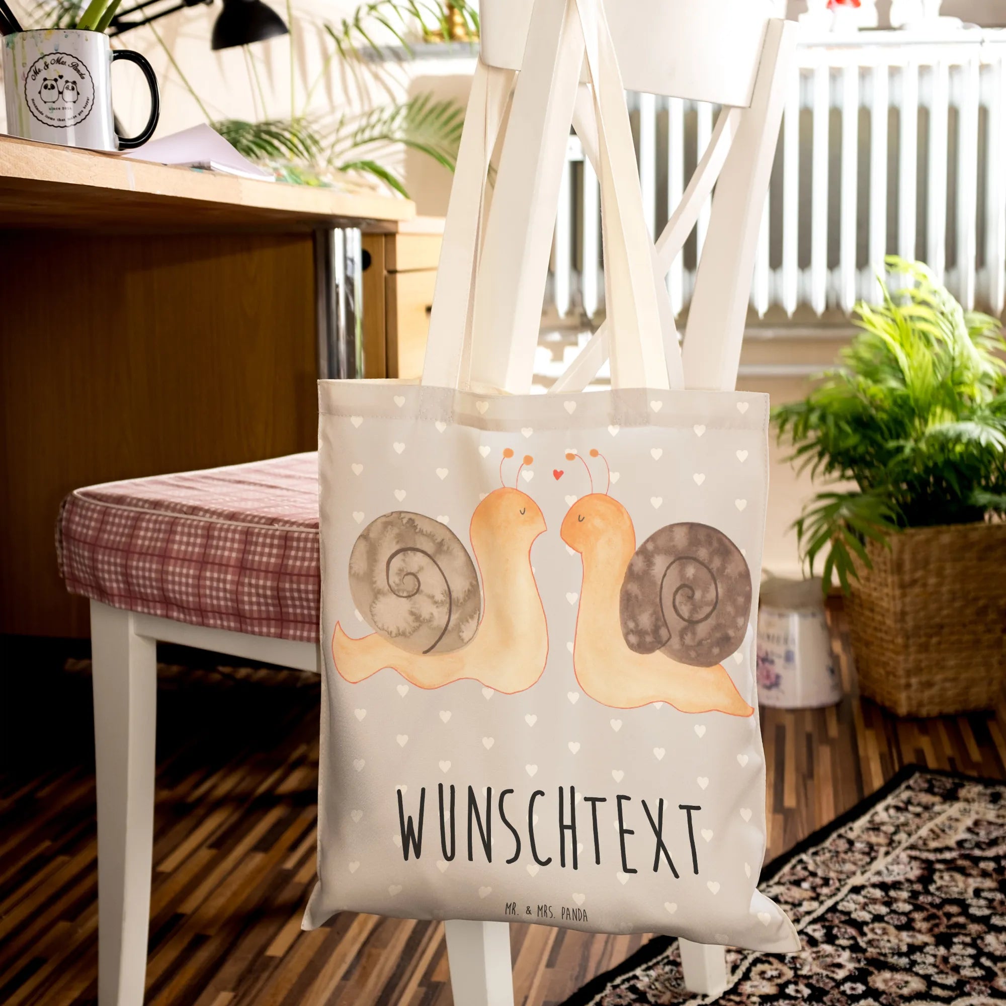 Die personalisierte Einkaufstasche mit dem Motiv "Schnecken Liebe" aus der Kollektion Liebe von Mr. & Mrs. Panda ist das perfekte Geschenk für Paare, Freunde und Verliebte! Du suchst nach einer besonderen Überraschung für deinen Lebenspartner, deine Freundin oder deinen Freund? Diese charmante Tasche wird Herzen höher schlagen lassen!