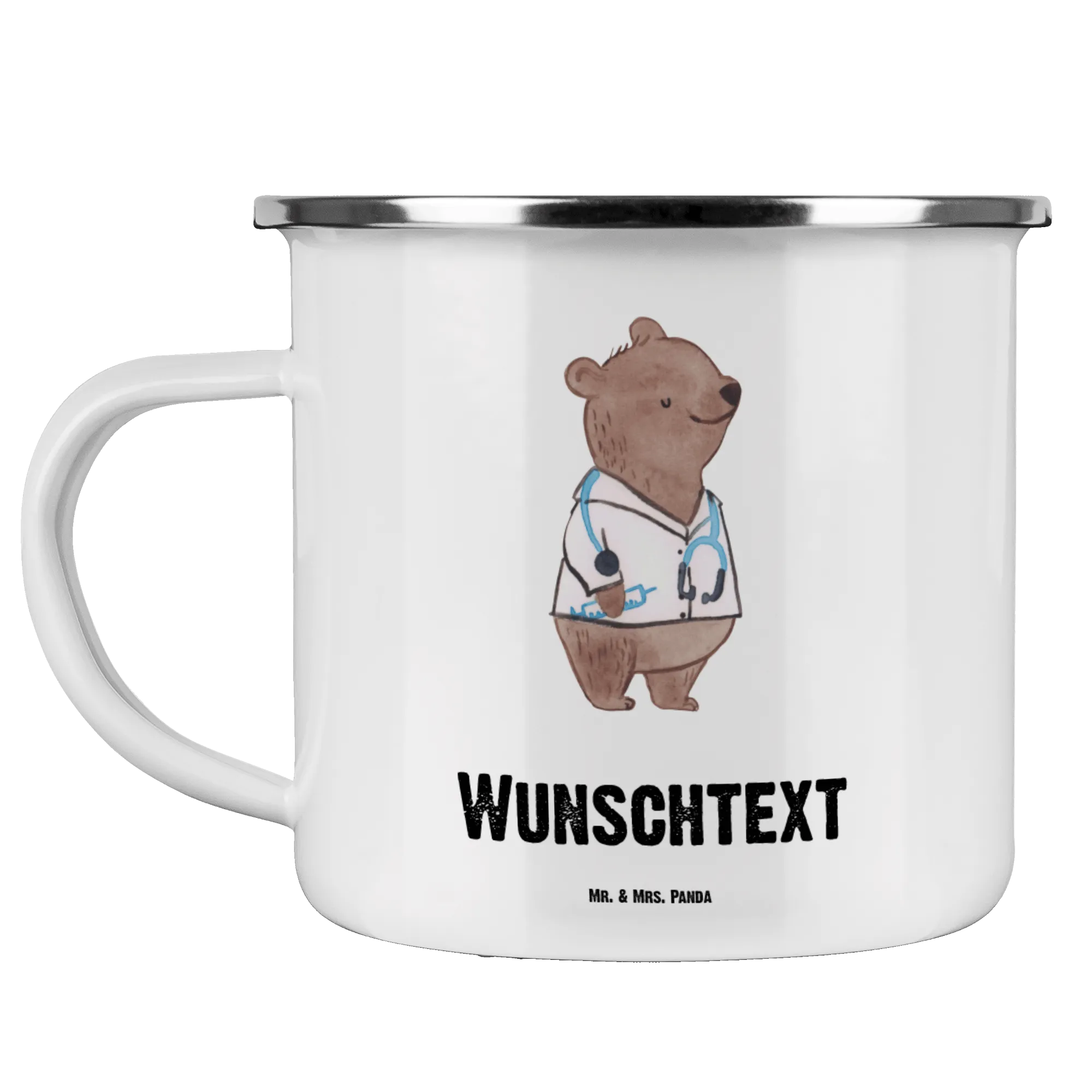 Personalisierte Emaille Tasse „Arzt mit Herz“ – ein Geschenk mit Herz und Humor.