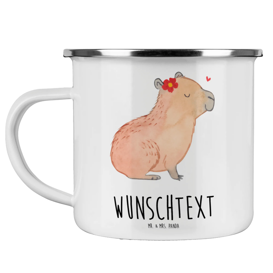 Die personalisierte Emaille Tasse "Capybara Blume" aus der besonderen Small World Kollektion von Mr. & Mrs. Panda ist das perfekte Geschenk für Tierliebhaber und Campingfreunde! Diese Tasse ist nicht nur superpraktisch für heiße und kalte Getränke, sondern bringt auch gute Laune in jede Pause.