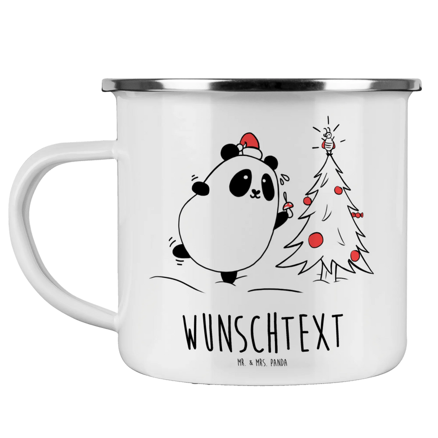Die personalisierte Emaille Tasse "Easy & Peasy Weihnachtszeit" von Mr. & Mrs. Panda ist das perfekte Geschenk für jeden, der die winterliche Jahreszeit liebt. Mit ihrem niedlichen Motiv, das einen fröhlichen Panda mit einer Nikolausmütze zeigt, ist diese Tasse nicht nur ein praktisches Utensil für den Alltag, sondern auch ein liebevolles Accessoire, das ein Lächeln ins Gesicht zaubert. Die Tasse hat eine Füllmenge von 300 ml und ist ideal für heiße Schokolade, aromatischen Tee oder einen gemütlichen Glühwein an kalten Winterabenden.