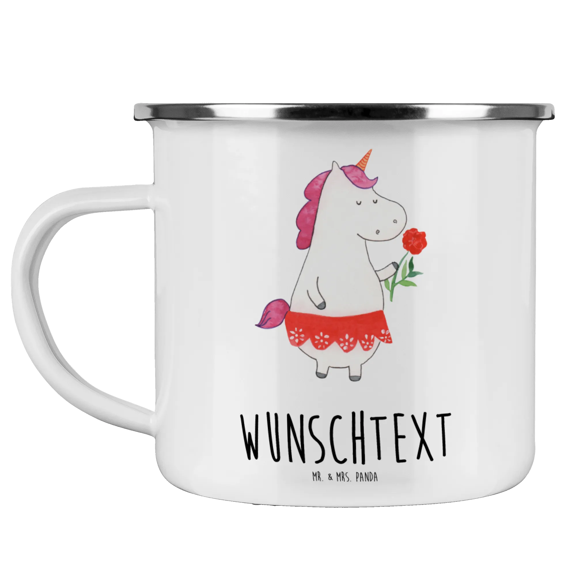 Die personalisierte Emaille Tasse 'Einhorn Dame' aus der bezaubernden Einhorn-Kollektion von Mr. & Mrs. Panda ist das perfekte Geschenk für alle, die die Magie der Einhörner lieben!
