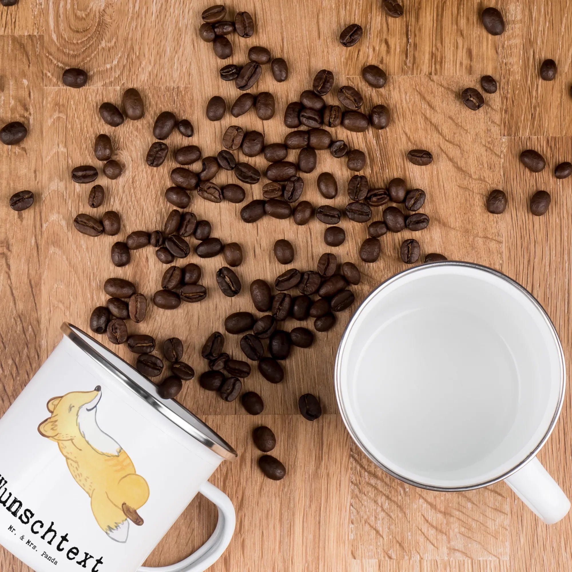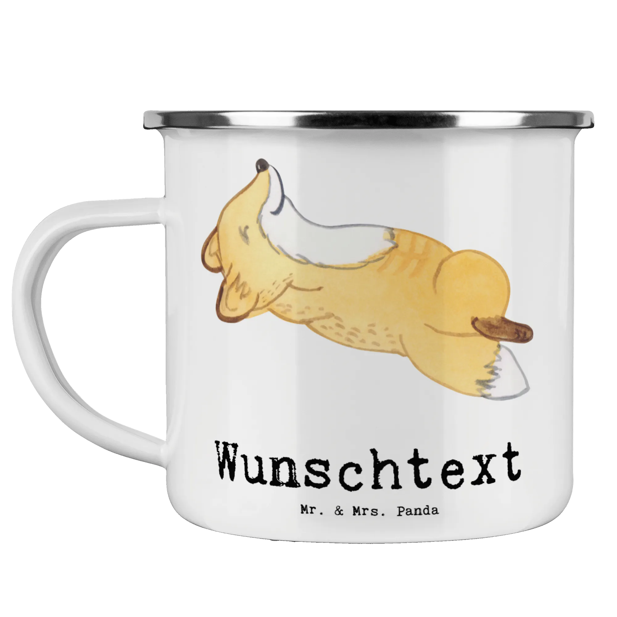 Entdecke die perfekte Geschenkidee für alle Fitnessbegeisterten mit unserer personalisierten Emaille Tasse "Fuchs Crunches Tage" von Mr. & Mrs. Panda!
