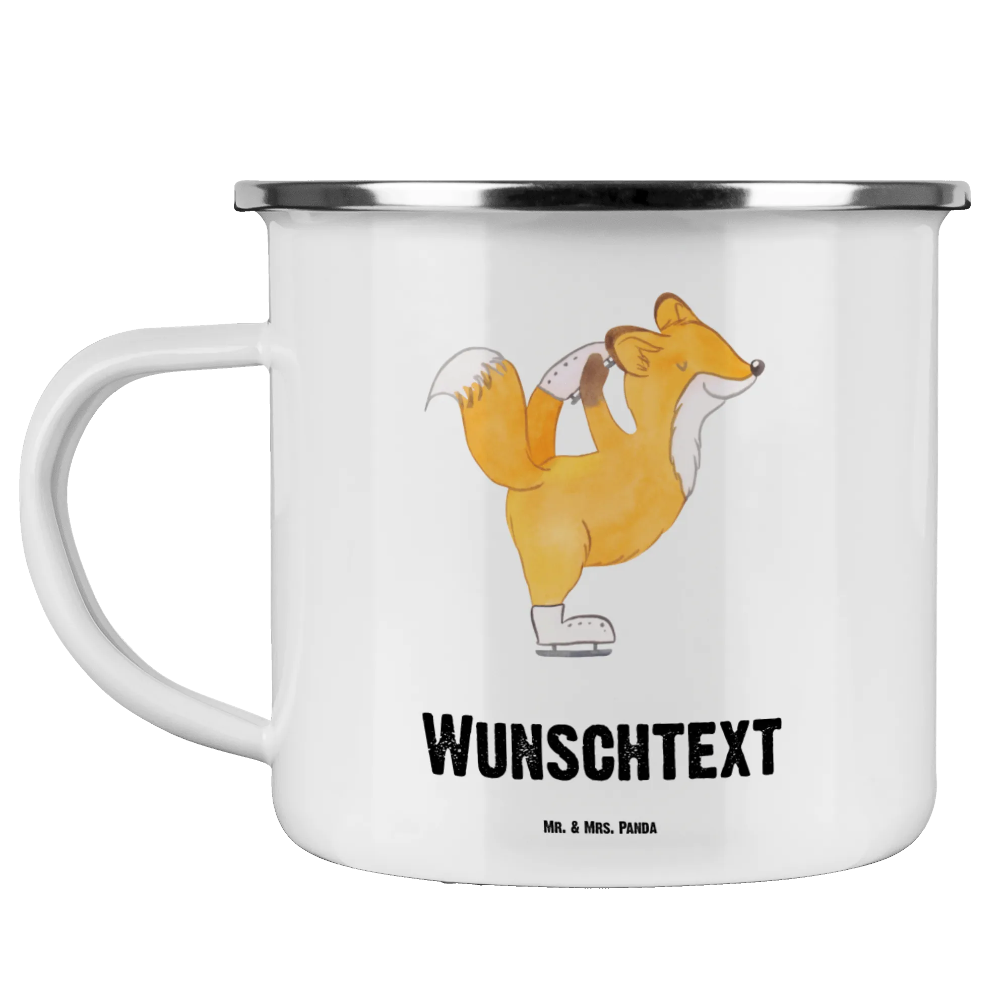 Personalisierte Emaille Tasse Fuchs Eiskunstläufer