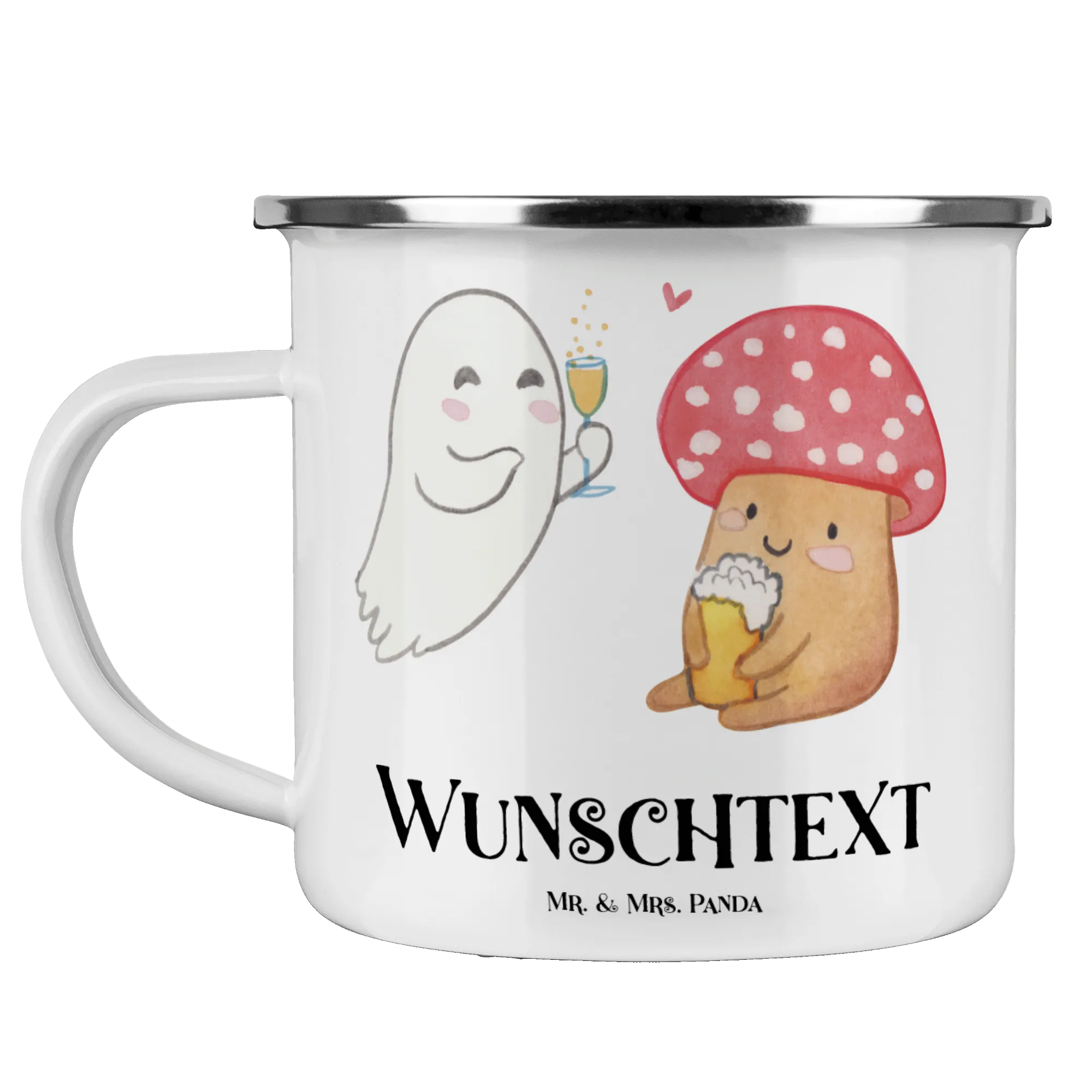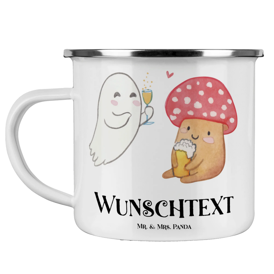 Entdecke die zauberhafte Welt von Mr. & Mrs. Panda mit unserer personalisierten Emaille Tasse mit dem süßen Gespenst-Motiv "Prost" aus der speziellen Halloween-Kollektion! Diese Tasse ist nicht nur ein praktisches Camping-Accessoire, sondern auch ein einzigartiges Geschenk, das die Herzen deiner Freunde und Familie im Handumdrehen erobert. Schau dir unser freundliches Gespenst an, das sein Glas Champagner mit einem fröhlichen Lächeln anhebt, während es zuprosten möchte. Daneben steht ein flauschiger Fliegenpilz mit einem Pils in der Hand. Die liebevollen Details, wie kleine Herzchen und Schaumblasen, machen diese Tasse zu einem echten Hingucker!