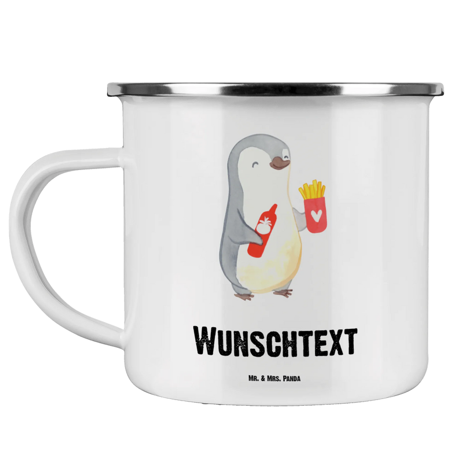 Die Pflege der Tasse ist ganz einfach: Eine sanfte Handwäsche wird empfohlen, um die Kratzfestigkeit zu erhalten. Egal, ob auf dem Campingplatz oder im Büro – diese Emaille Tasse wird die perfekte Begleitung sein. Verschenke Freude und ein Stück Imbissliebe mit dieser einmaligen und personalisierten Tasse aus der kreativen Berufe Kollektion von Mr. & Mrs. Panda!