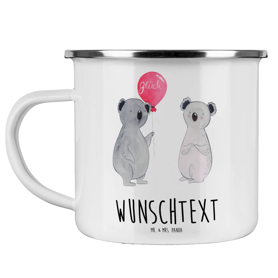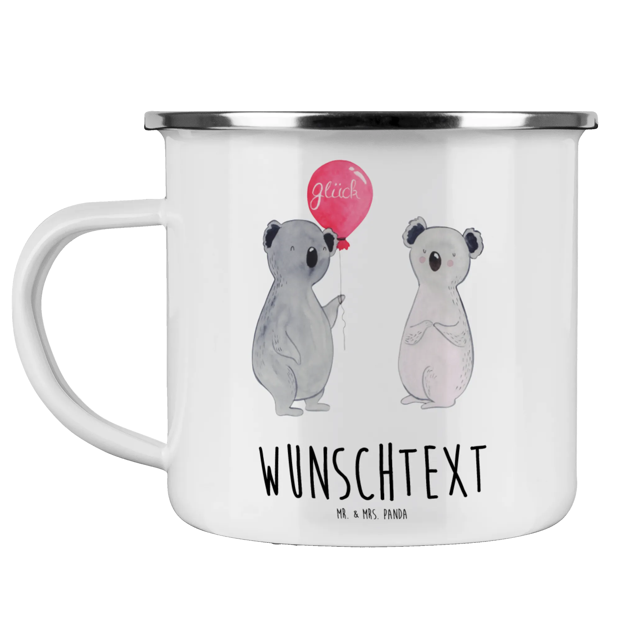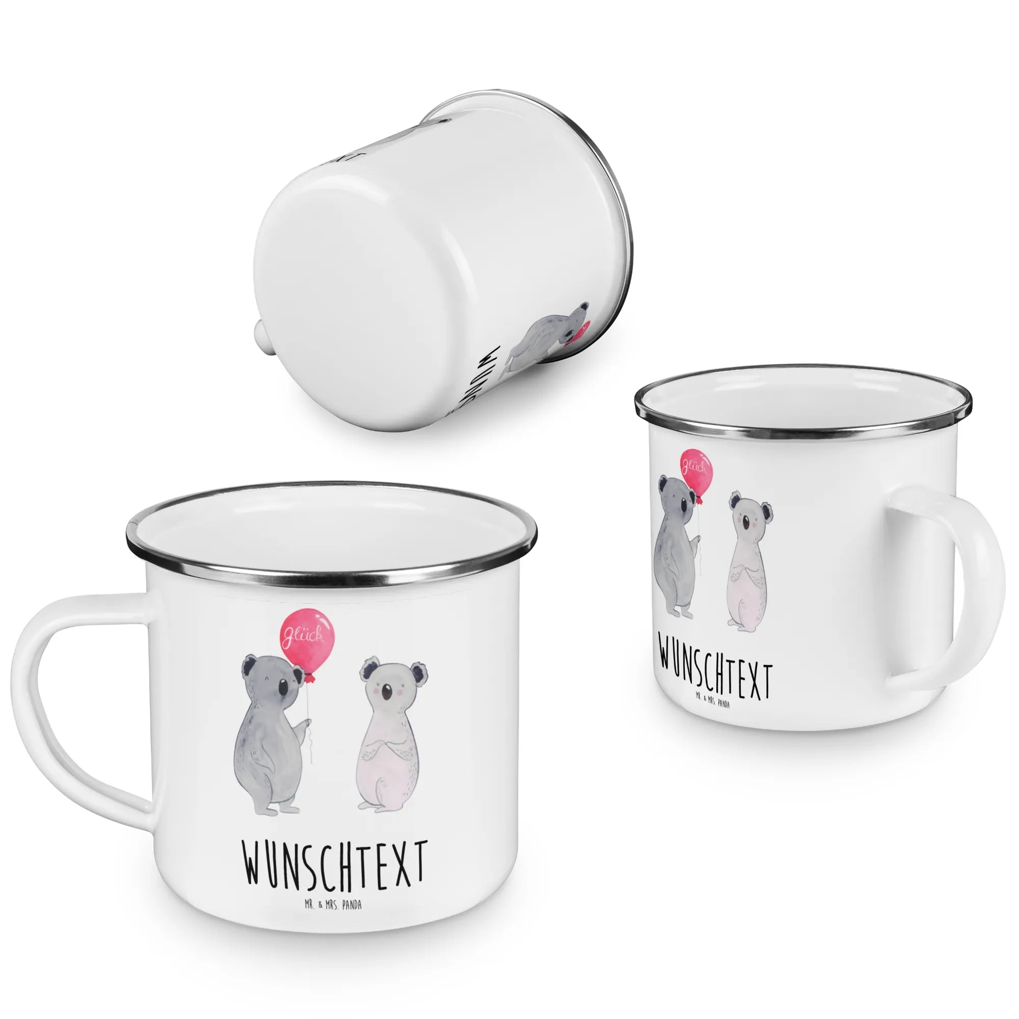 Die personalisierte Emaille Tasse mit dem süßen Koala Luftballon Motiv von Mr. & Mrs. Panda ist das perfekte Geschenk für jeden Anlass! Perfekt für alle, die eine besondere Tasse lieben – sei es für den nächsten Campingausflug, beim Picknick im Park oder einfach nur als Highlight für den Frühstückstisch zu Hause. Diese wunderschöne und kratzfeste Emaille Tasse wird schnell zu deinem neuen Lieblingsteil im Campinggeschirr! Sie hat eine Füllmenge von 300 ml und bietet genügend Platz für deinen heißgeliebten Kaffee, Tee oder Kakao.