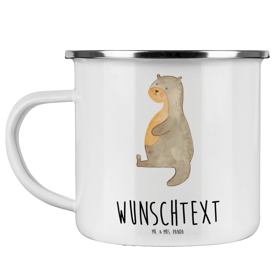 Die personalisierte Emaille Tasse mit dem niedlichen Otter Bauch aus der Otter-Kollektion von Mr. & Mrs. Panda ist das perfekte Geschenk für alle, die das Besondere lieben! Sie bringt nicht nur einen Hauch von Freude in deinen Alltag, sondern ist auch äußerst praktisch. Mit einem Fassungsvermögen von 300 ml und einer Größe von 80 mm x 80 mm x 80 mm eignet sie sich hervorragend für sowohl heiße als auch kalte Getränke.