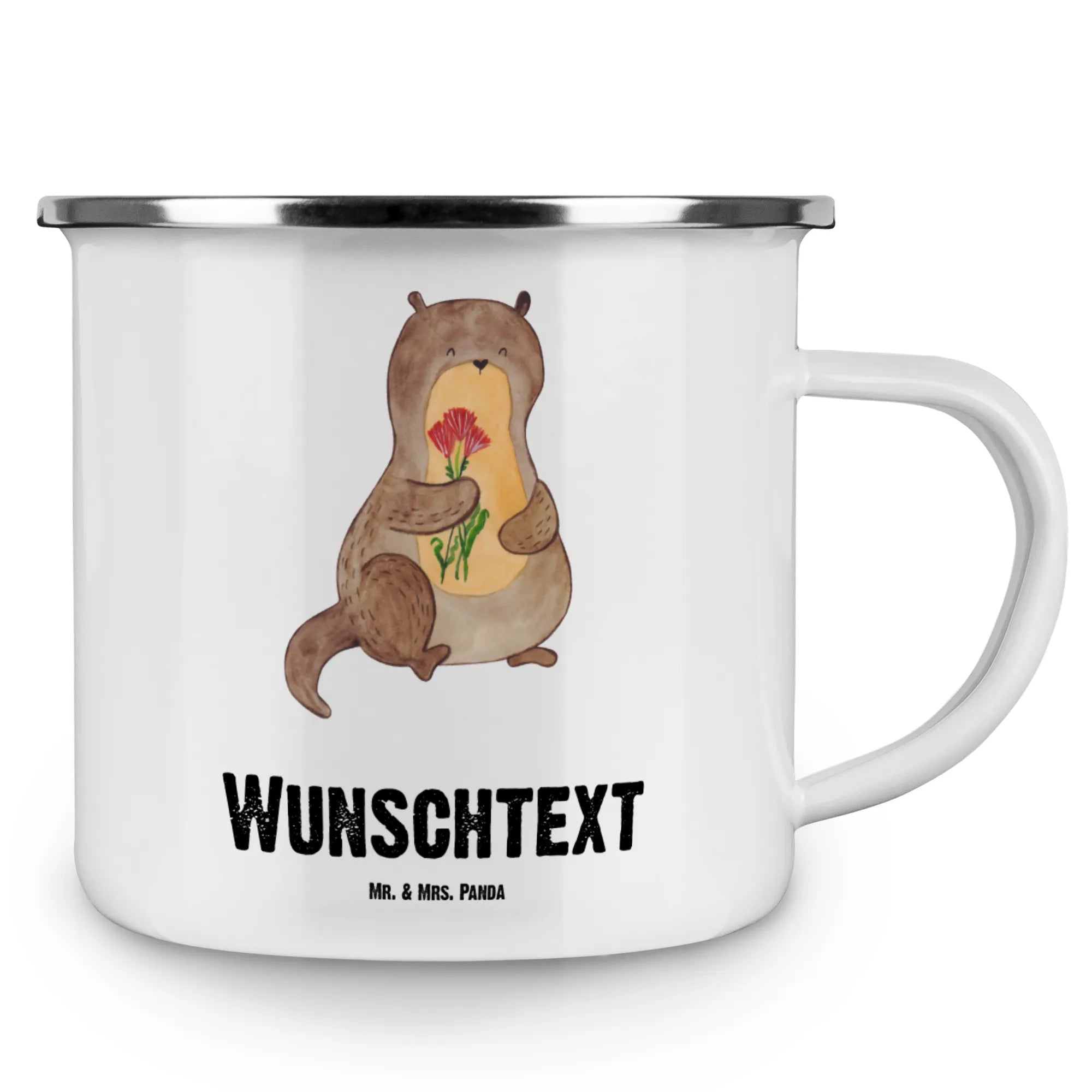 Personalisierte Emaille Tasse Otter Blumenstrauß