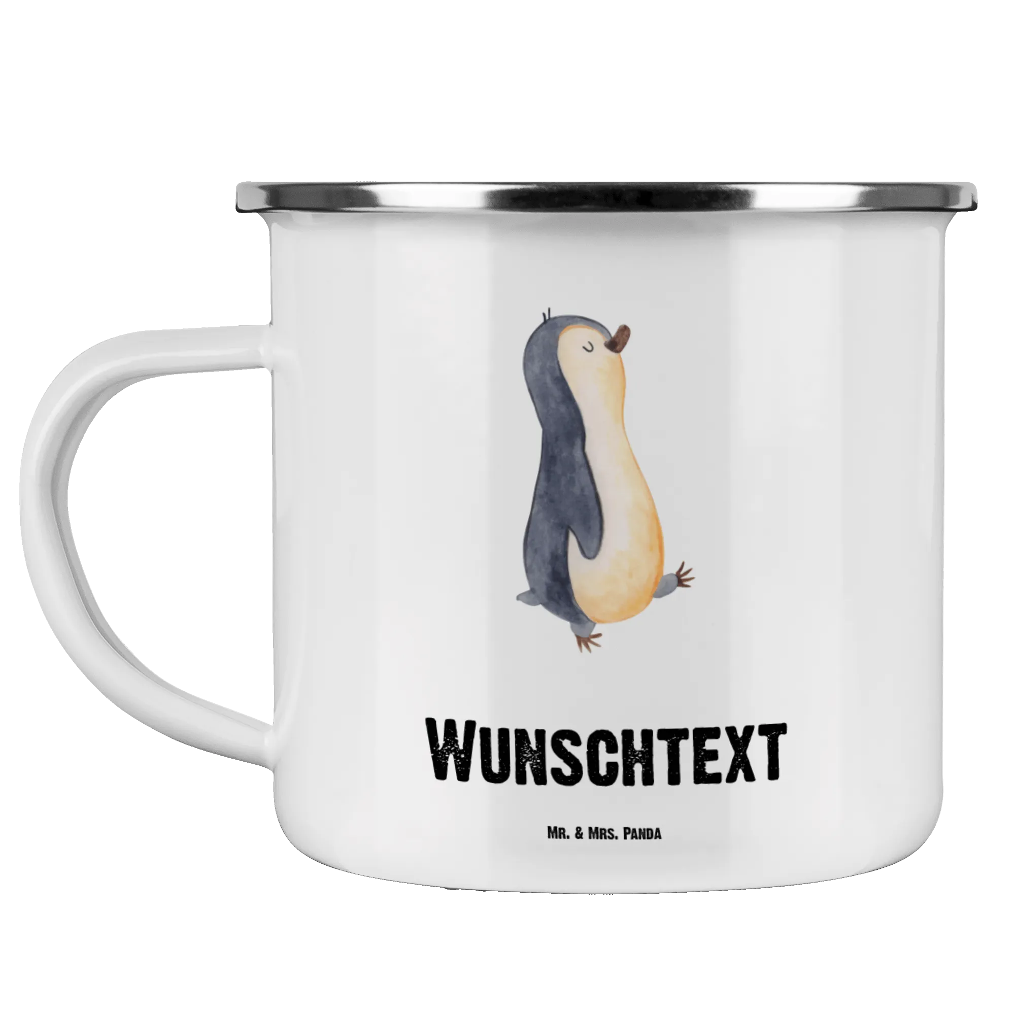 Personalisierte Emaille Tasse Pinguin marschierend
