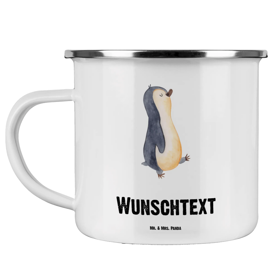 Entdecke die charmante personalisierte Emaille Tasse mit dem motivierenden Pinguin marschierend von der Pinguin - Kollektion von Mr. & Mrs. Panda!