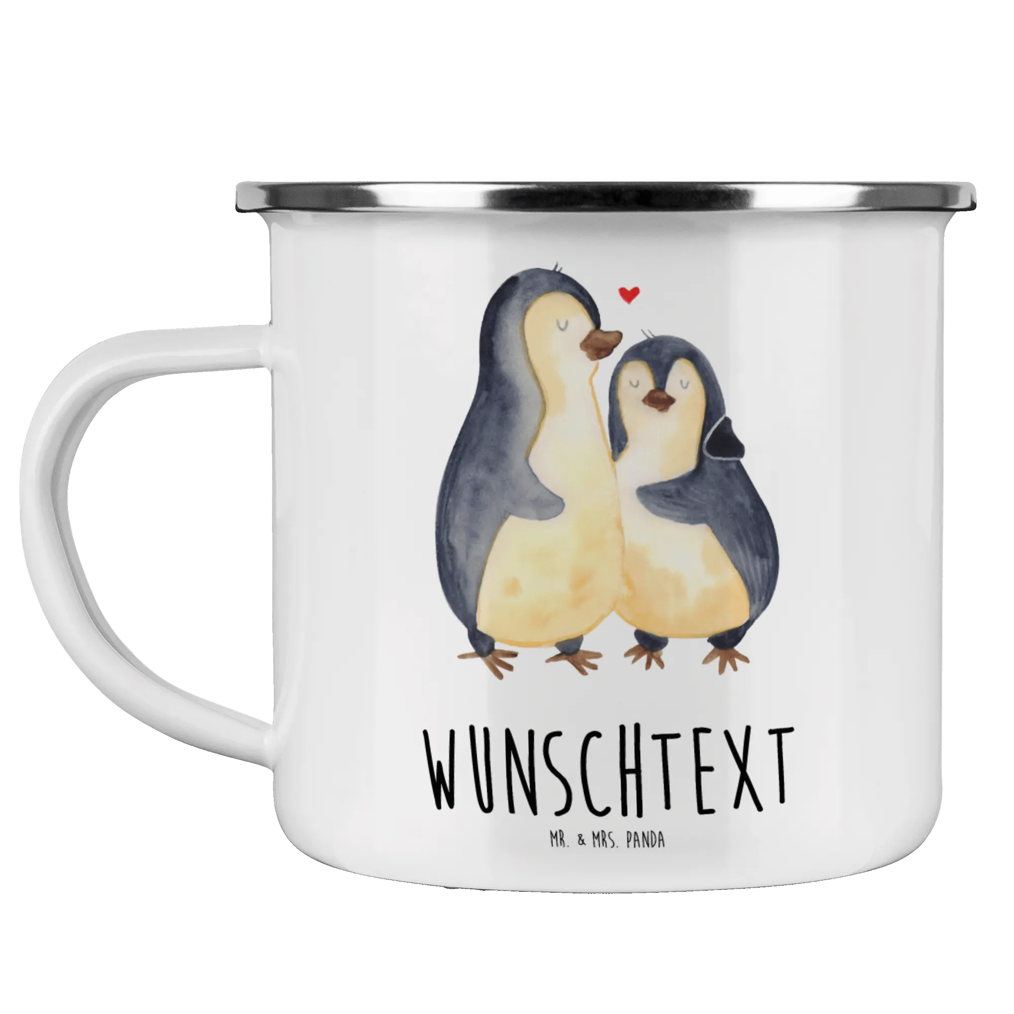 Personalisierte Emaille Tasse Pinguin umarmend – Mr. & Mrs. Panda