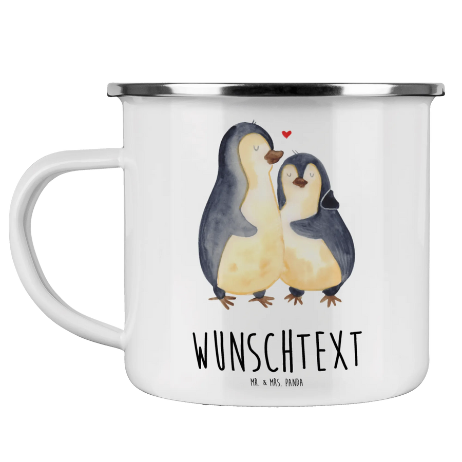 Personalisierte Emaille Tasse Pinguin umarmend