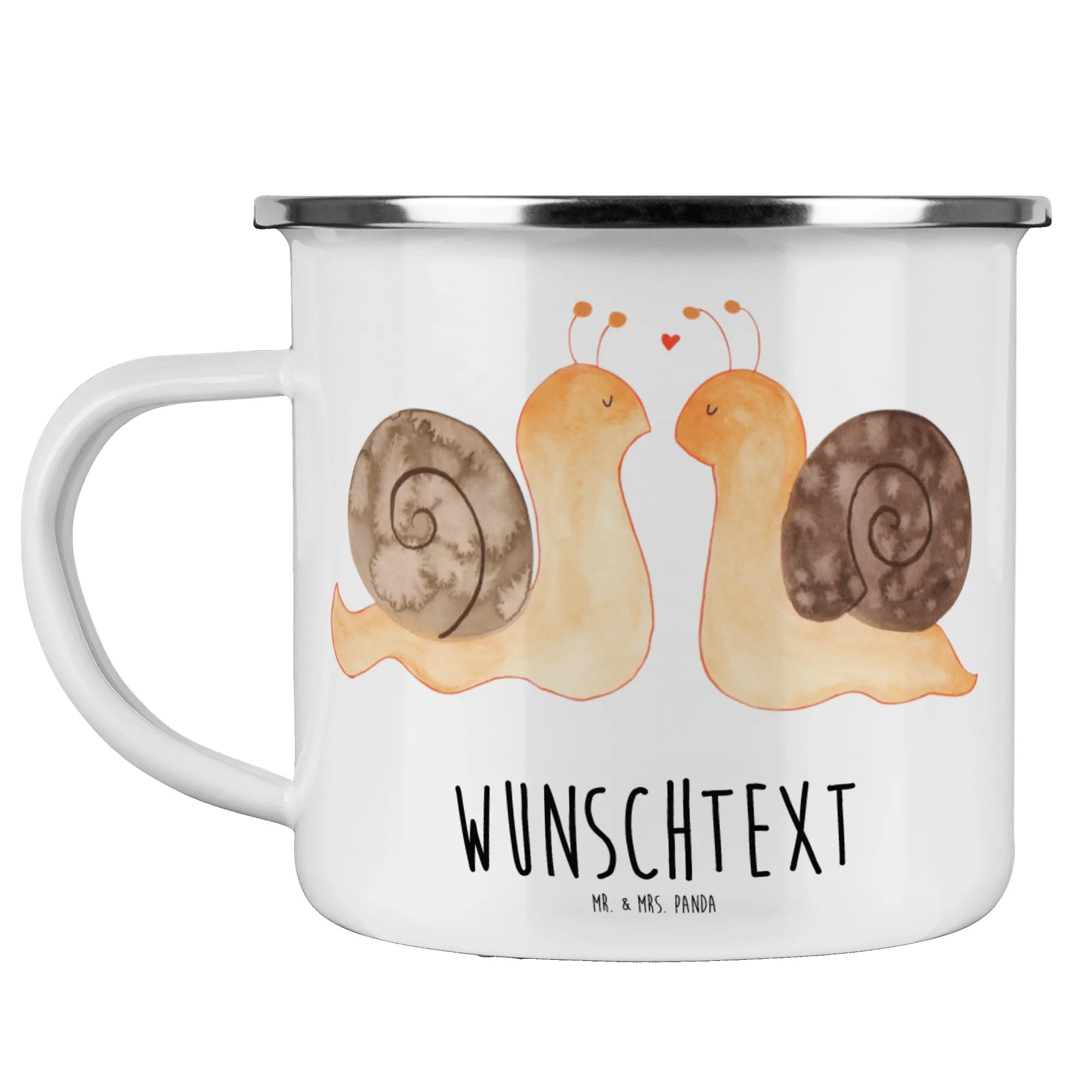 Die personalisierte Emaille Tasse "Schnecken Liebe" aus der Kollektion Liebe von Mr. & Mrs. Panda ist das ideale Geschenk für Verliebte! Diese wunderschöne und beständige Camping-Tasse mit individueller Namensgravur überrascht deinen Partner oder deine Partnerin mit einem liebevollen Detail. Egal, ob zum Valentinstag, Jahrestag, Hochzeitstag oder zur Verlobung – diese Tasse ist ein echtes Liebesgeschenk, das von Herzen kommt.