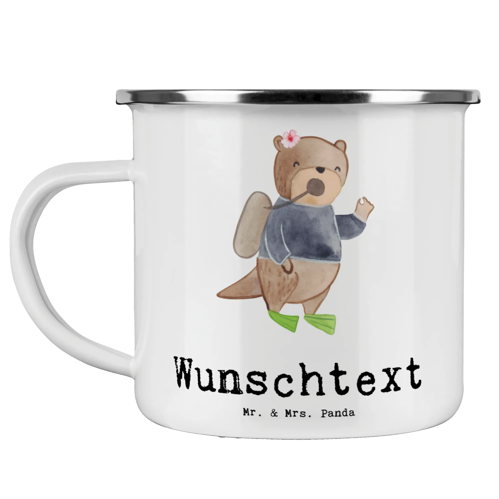 Personalisierte Emaille Tasse Taucherin mit Herz