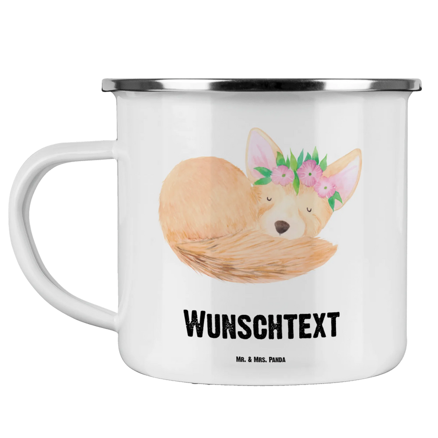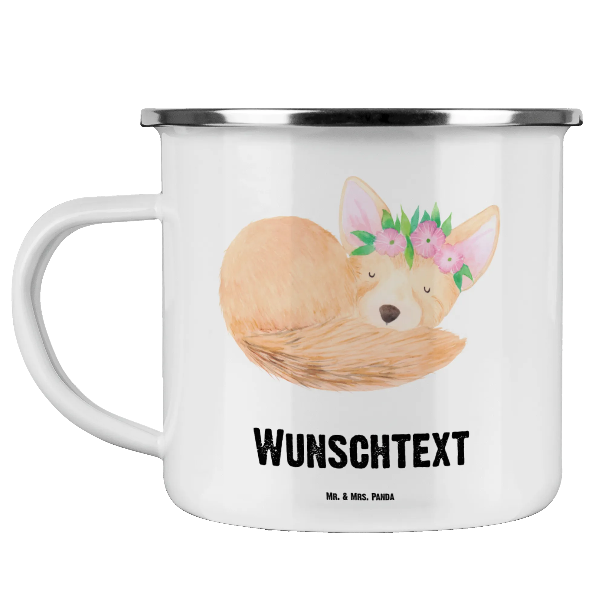 Personalisierte Emaille Tasse Wüstenfuchs Blumenkranz