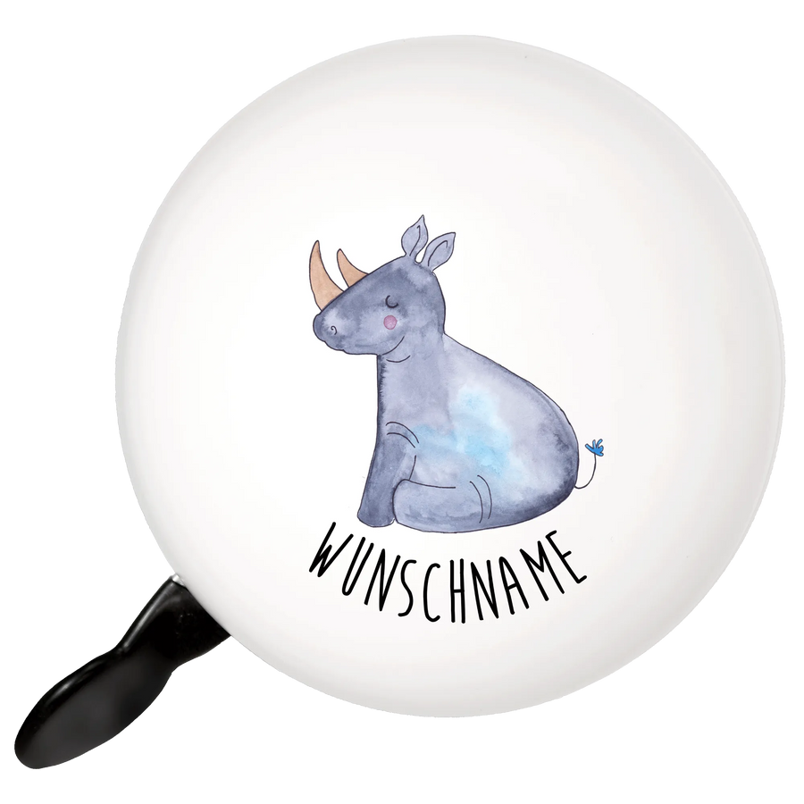 Der strahlende Druck des süßen Nashorns, das mit dem Spruch 'Ich liebe Nashörner. Die sind wie Einhörner, nur dicker.' verziert ist, zaubert ein Lächeln auf dein Gesicht und das deiner Freunde. Die Klingel kann individuell mit deinem Wunschtext gestaltet werden und wird zum einzigartigen Hingucker an deinem Lenker.