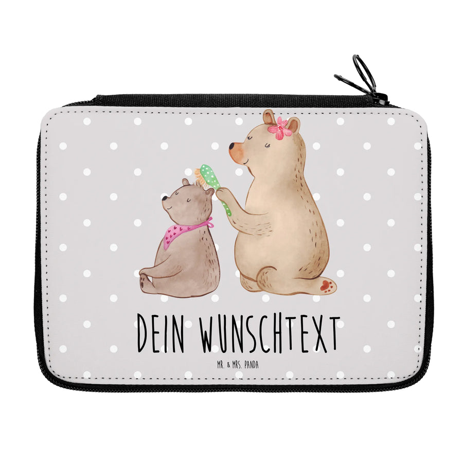 Personalisierte Federmappe Bär mit Kind - Grau Pastell