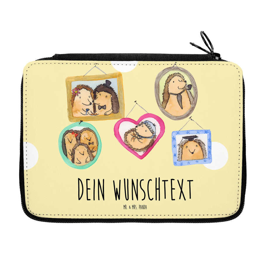 Personalisierte Federmappe Igel Familie - Gelb Pastell