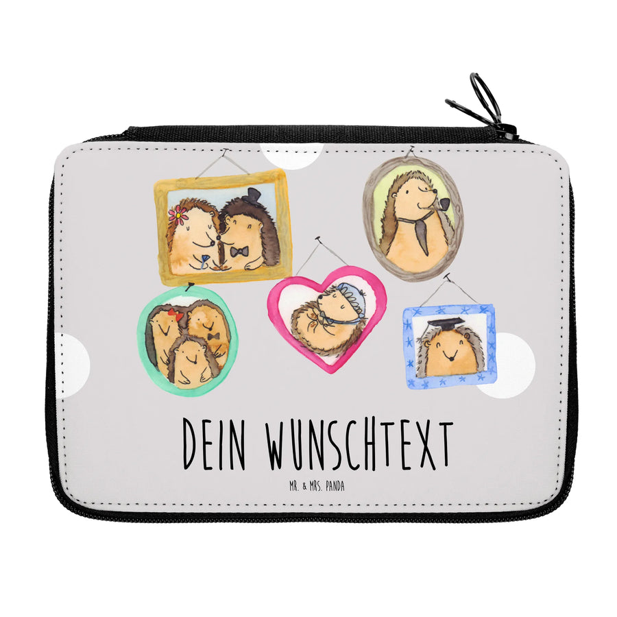 Personalisierte Federmappe Igel Familie - Grau Pastell