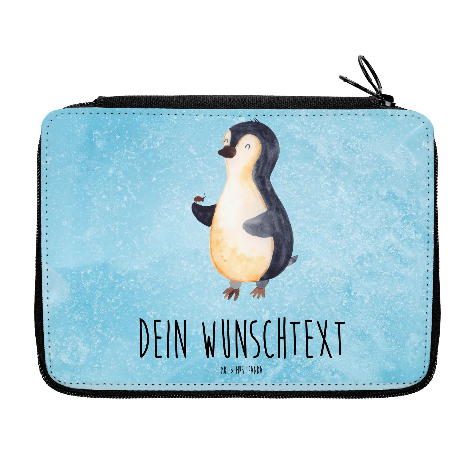 Personalisierte Federmappe Pinguin Marienkäfer - Eisblau