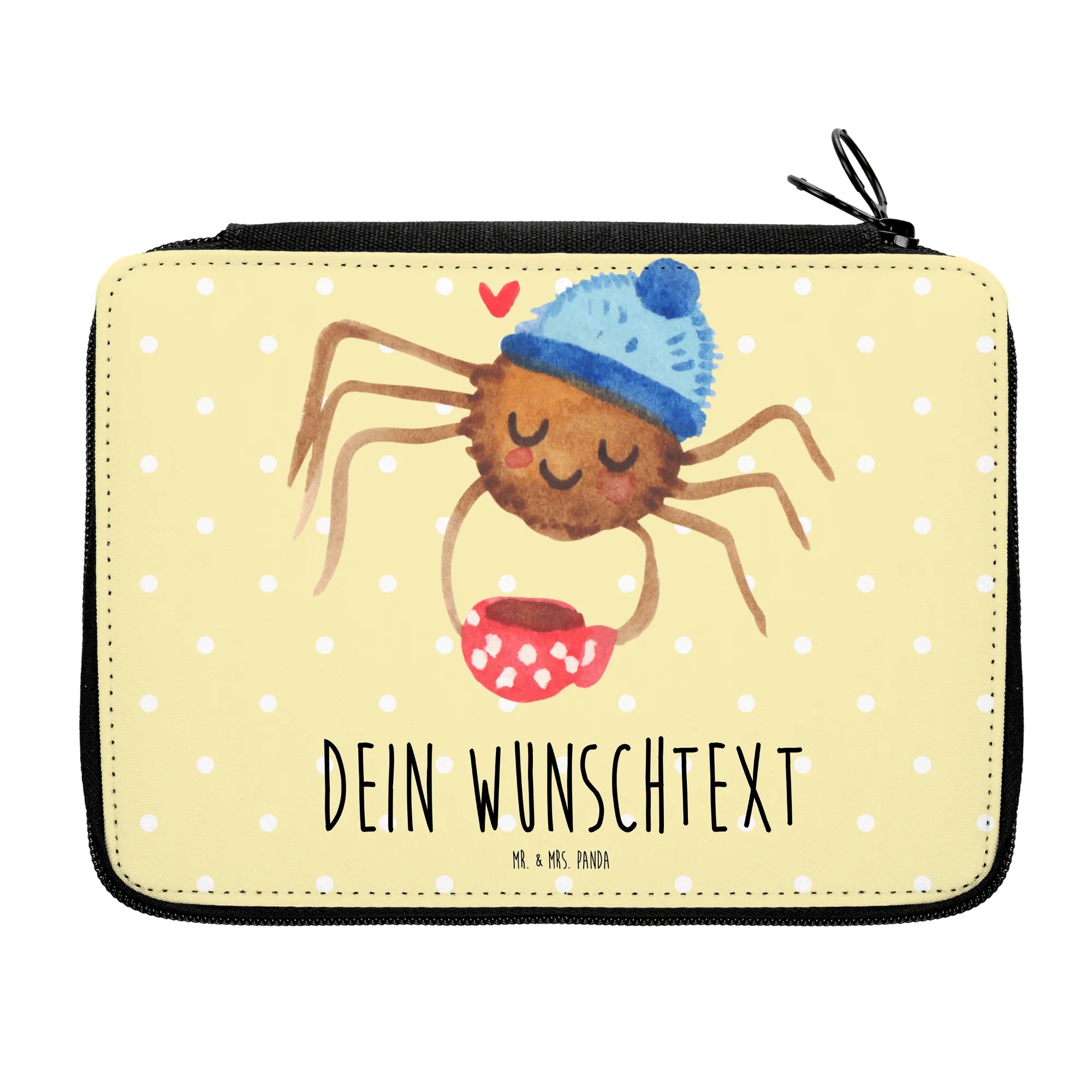 Personalisierte Federmappe Spinne Agathe Kaffee - Gelb Pastell