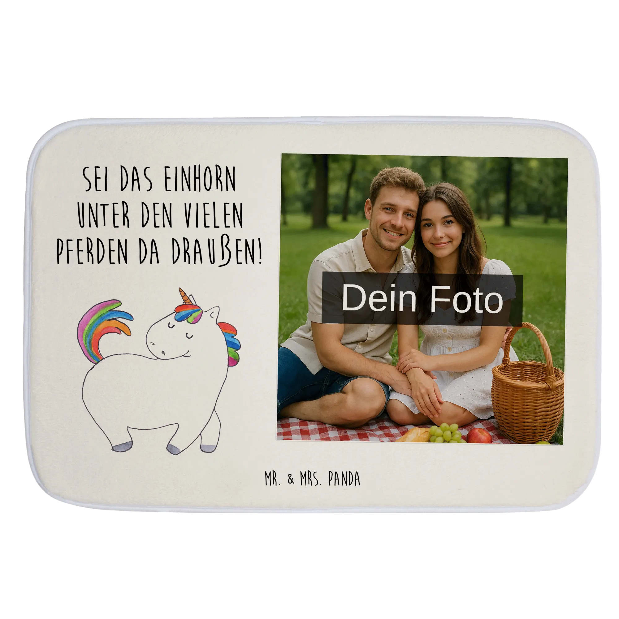 Personalisierte Foto Badematte Einhorn Stolzieren – Mr. & Mrs. Panda