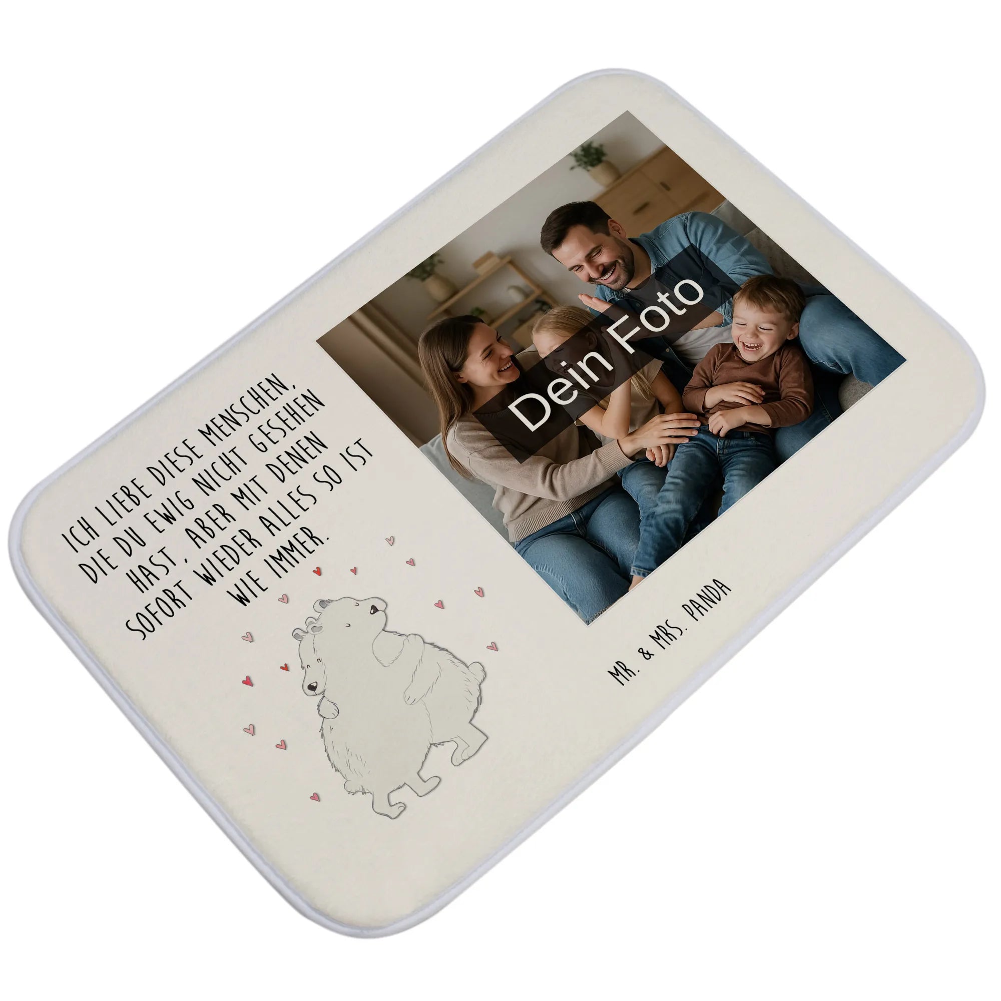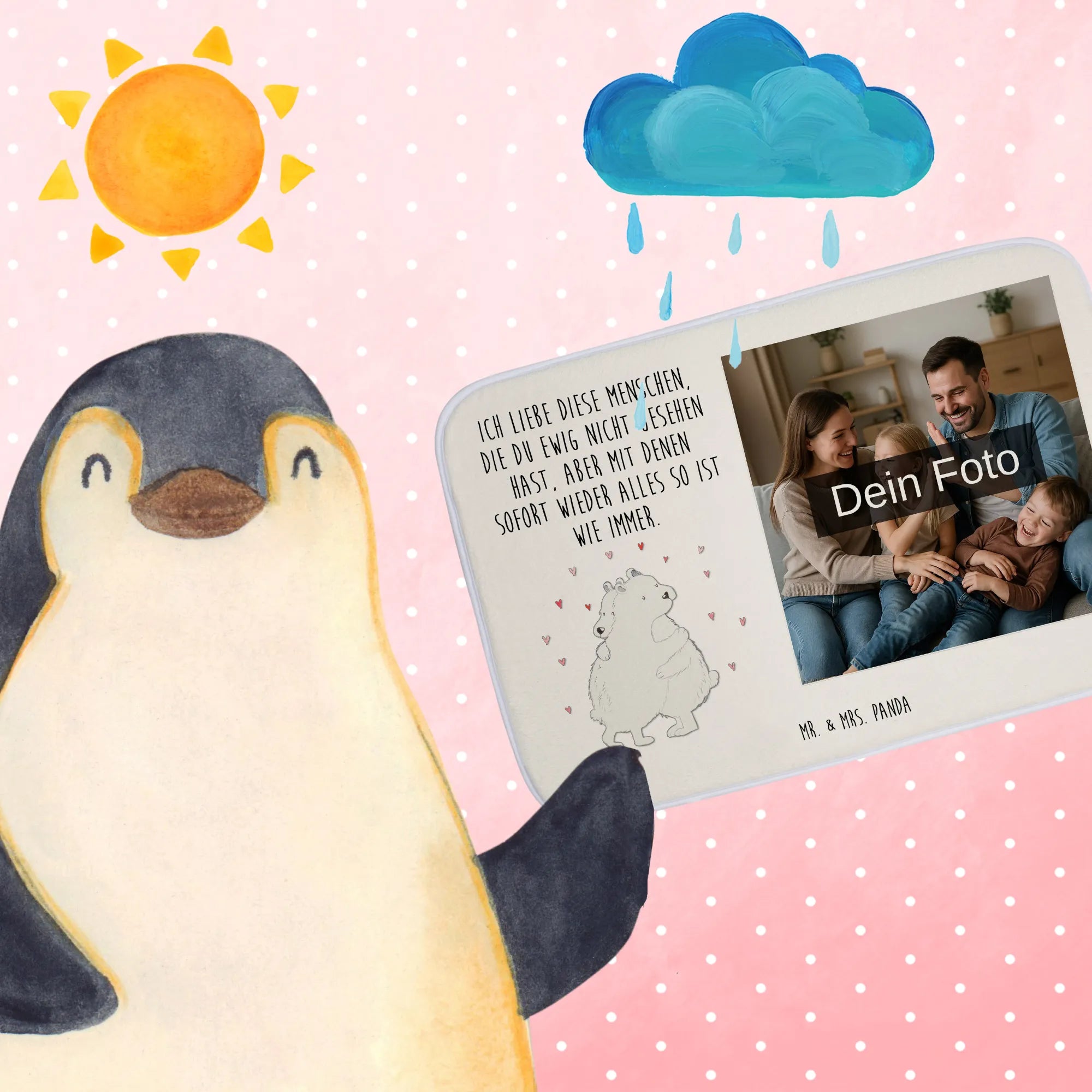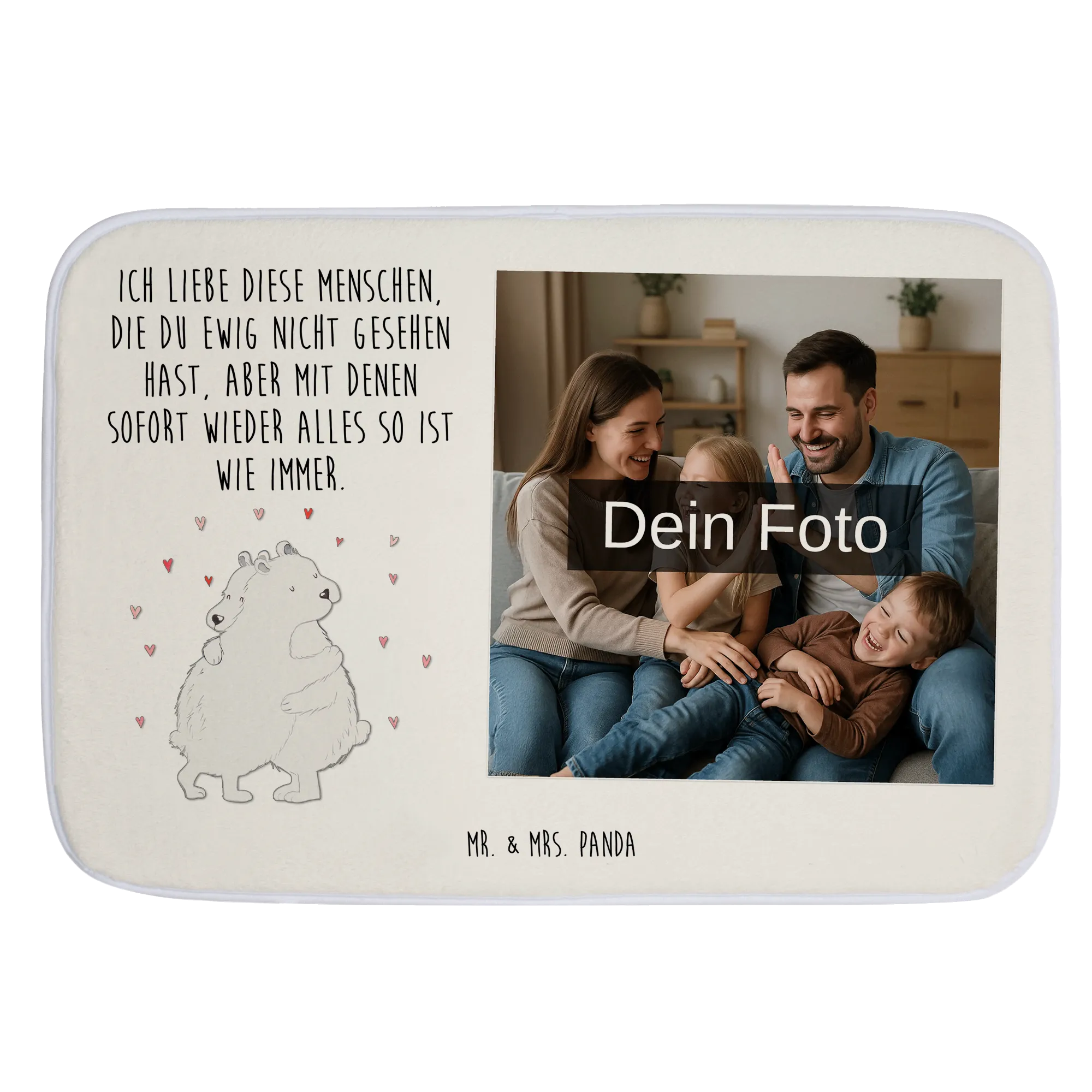 Mach dein Badezimmer zu einem ganz besonderen Ort mit unserer personalisierten Foto Badematte von Mr. & Mrs. Panda! Diese Badematte ist nicht nur ein praktischer Helfer, sondern auch ein echter Hingucker. Mit einer Größe von 590 mm x 400 mm sorgt sie für ein angenehmes Gefühl an den Füßen. Über die flauschige Premium Kunstfaser kannst du dein Lieblingsfoto drucken lassen, sodass du jeden Tag ein Stück deiner schönsten Erinnerungen beim Betreten des Badezimmers genießen kannst. Die besondere Antirutsch Gummibeschichtung macht die Matte besonders sicher, sodass du dir keine Sorgen um Ausrutscher machen musst. Die liebevolle Gestaltung und die hohe Saugfähigkeit der Matte machen sie zu einem Must-Have für jedes Badezimmer. Beachte beim Hochladen deines Fotos, dass es in hoher Qualität vorliegt und gut ins Bildformat passt. Dein Badezimmer wird mit dieser personalisierten Matte nicht nur sichtbarer, sondern auch einladender. Pflege sie einfach bei 30°C in der Waschmaschine und genieße den Komfort, den sie dir bietet!