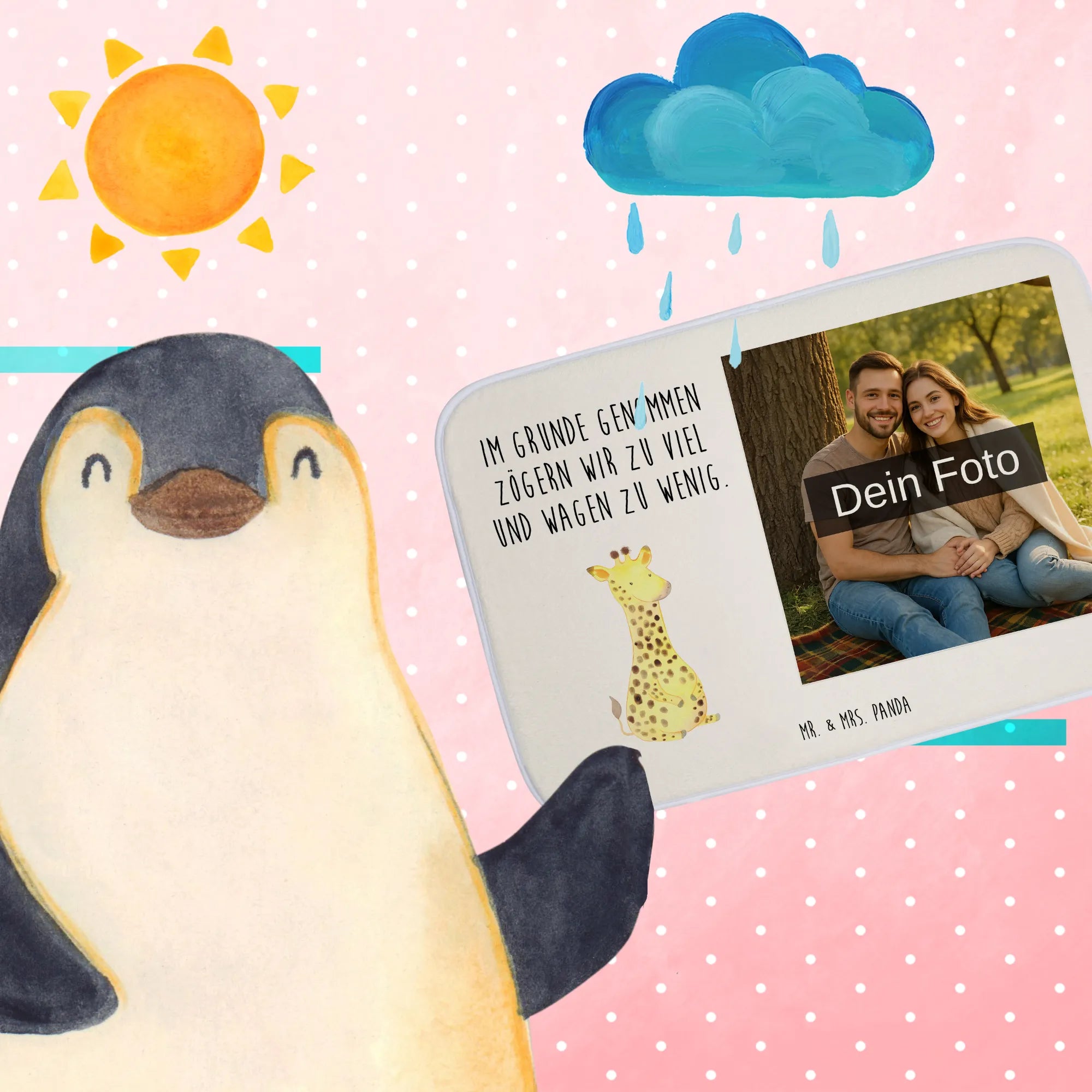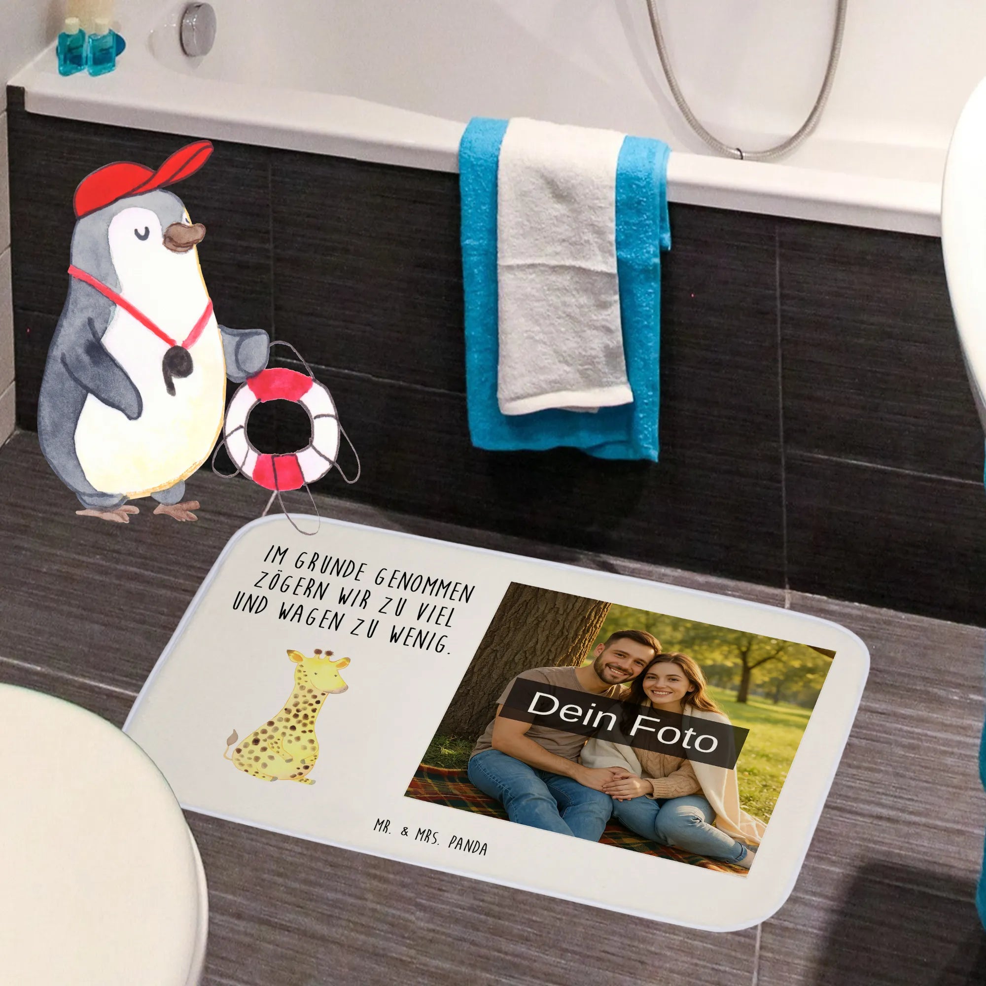 Mach dein Badezimmer zu einem ganz besonderen Ort mit unserer personalisierten Foto Badematte von Mr. & Mrs. Panda! Diese Badematte ist nicht nur ein praktischer Helfer, sondern auch ein echter Hingucker. Mit einer Größe von 590 mm x 400 mm sorgt sie für ein angenehmes Gefühl an den Füßen. Über die flauschige Premium Kunstfaser kannst du dein Lieblingsfoto drucken lassen, sodass du jeden Tag ein Stück deiner schönsten Erinnerungen beim Betreten des Badezimmers genießen kannst. Die besondere Antirutsch Gummibeschichtung macht die Matte besonders sicher, sodass du dir keine Sorgen um Ausrutscher machen musst. Die liebevolle Gestaltung und die hohe Saugfähigkeit der Matte machen sie zu einem Must-Have für jedes Badezimmer. Beachte beim Hochladen deines Fotos, dass es in hoher Qualität vorliegt und gut ins Bildformat passt. Dein Badezimmer wird mit dieser personalisierten Matte nicht nur sichtbarer, sondern auch einladender. Pflege sie einfach bei 30°C in der Waschmaschine und genieße den Komfort, den sie dir bietet!