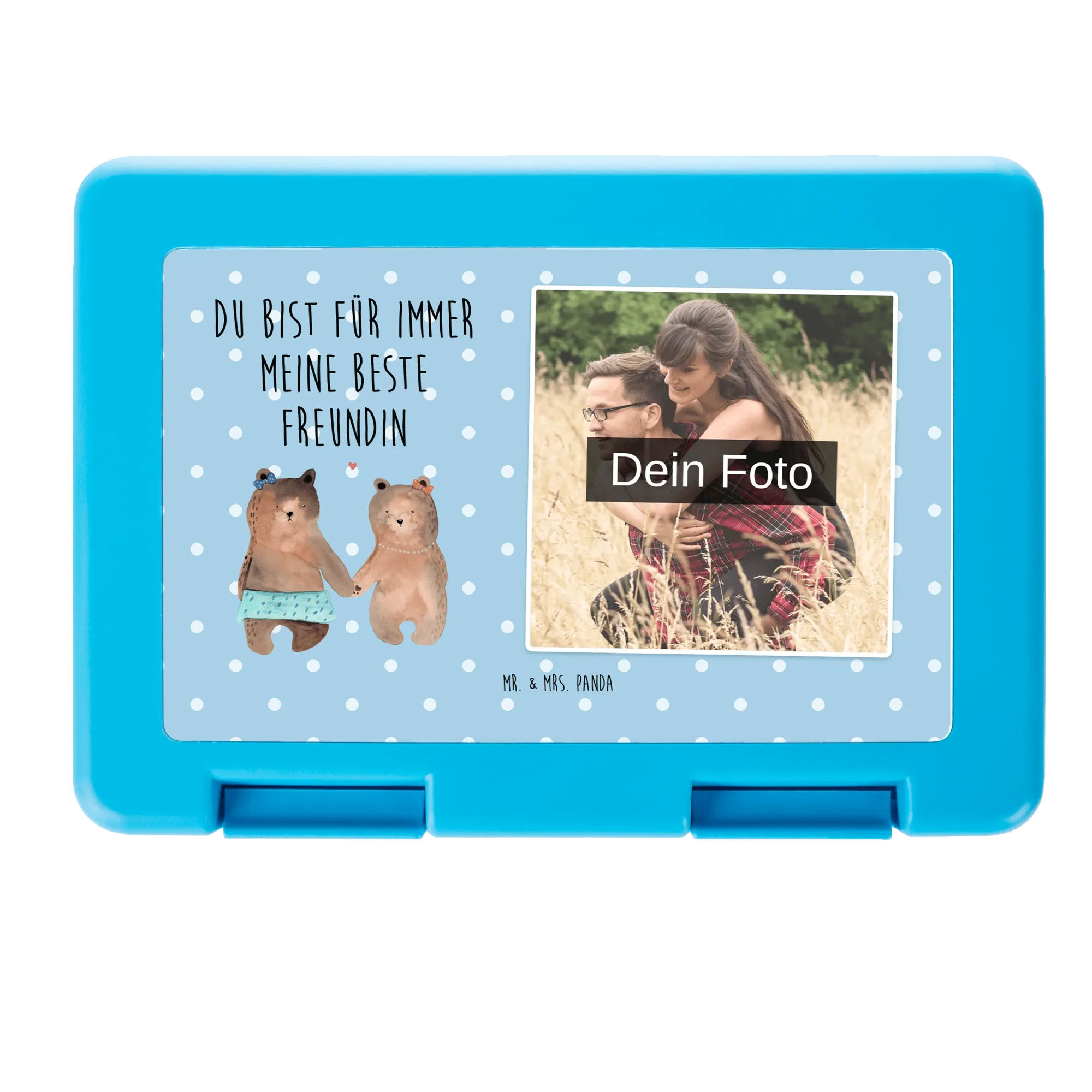 Die personalisierte Foto Brotdose von Mr. & Mrs. Panda ist ein Highlight für jeden Snack-Liebhaber! Mit 185 mm x 128 mm x 65 mm bietet sie ausreichend Platz für dein Mittagessen oder die Vesper für die Schule. Hergestellt aus strapazierfähigem Kunststoff, bleibt alles frisch und lecker! Du kannst die Brotbüchse mit einem persönlichen Foto gestalten und ihr so deinen ganz eigenen Stil verleihen – bitte achte darauf, dass das hochgeladene Bild eine hohe Auflösung hat! Zusätzliche Merkmale wie der sichere Doppelverschluss und Luftlöcher, die für eine optimale Zirkulation sorgen, machen diese Vesperdose besonders praktisch und einzigartig. Ideal für den Unterricht oder im Job – genieße jede Pause in voller Farbenpracht! Pflegehinweis: Handspülung empfohlen.