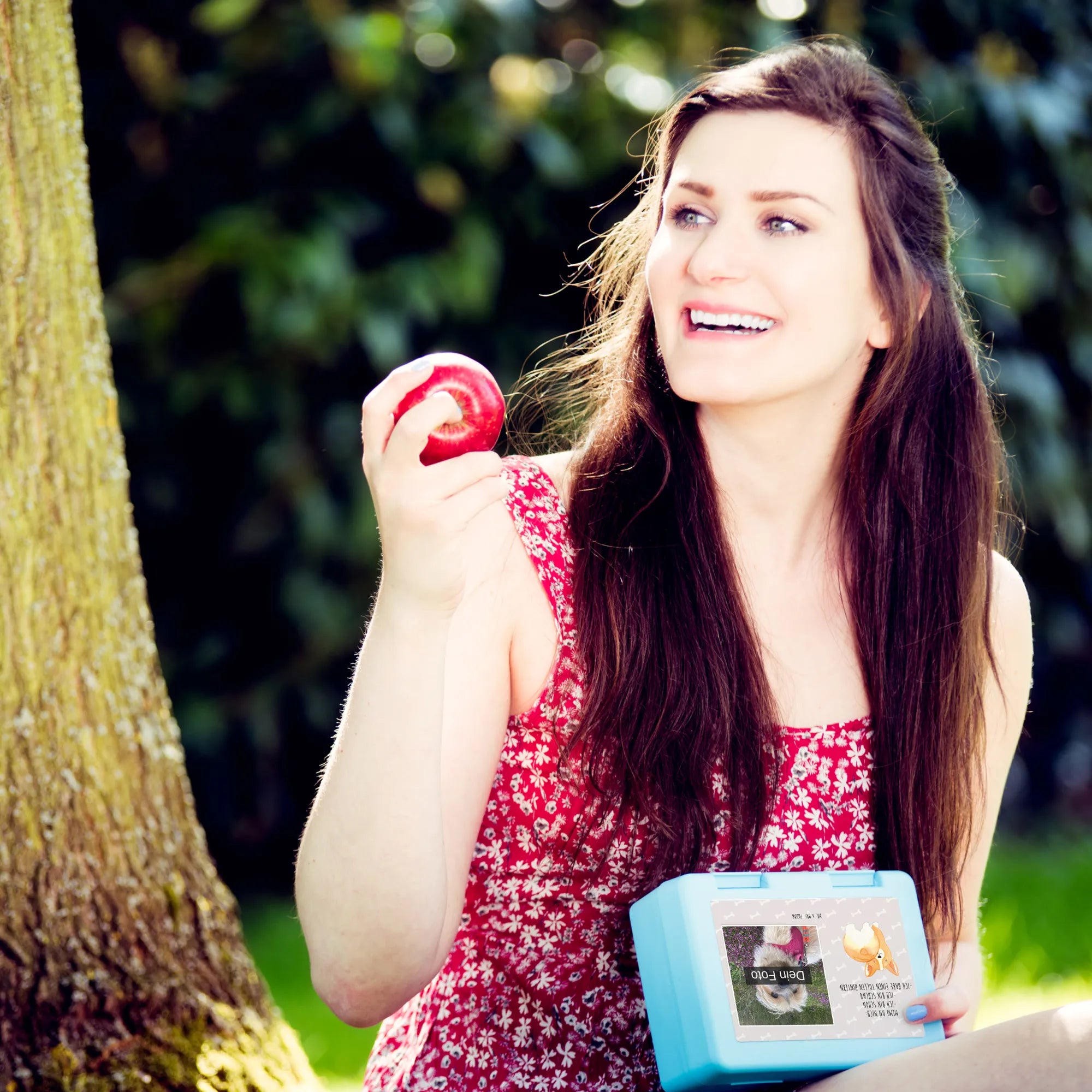 Die personalisierte Foto Brotdose von Mr. & Mrs. Panda ist ein Highlight für jeden Snack-Liebhaber! Mit 185 mm x 128 mm x 65 mm bietet sie ausreichend Platz für dein Mittagessen oder die Vesper für die Schule. Hergestellt aus strapazierfähigem Kunststoff, bleibt alles frisch und lecker! Du kannst die Brotbüchse mit einem persönlichen Foto gestalten und ihr so deinen ganz eigenen Stil verleihen – bitte achte darauf, dass das hochgeladene Bild eine hohe Auflösung hat! Zusätzliche Merkmale wie der sichere Doppelverschluss und Luftlöcher, die für eine optimale Zirkulation sorgen, machen diese Vesperdose besonders praktisch und einzigartig. Ideal für den Unterricht oder im Job – genieße jede Pause in voller Farbenpracht! Pflegehinweis: Handspülung empfohlen.