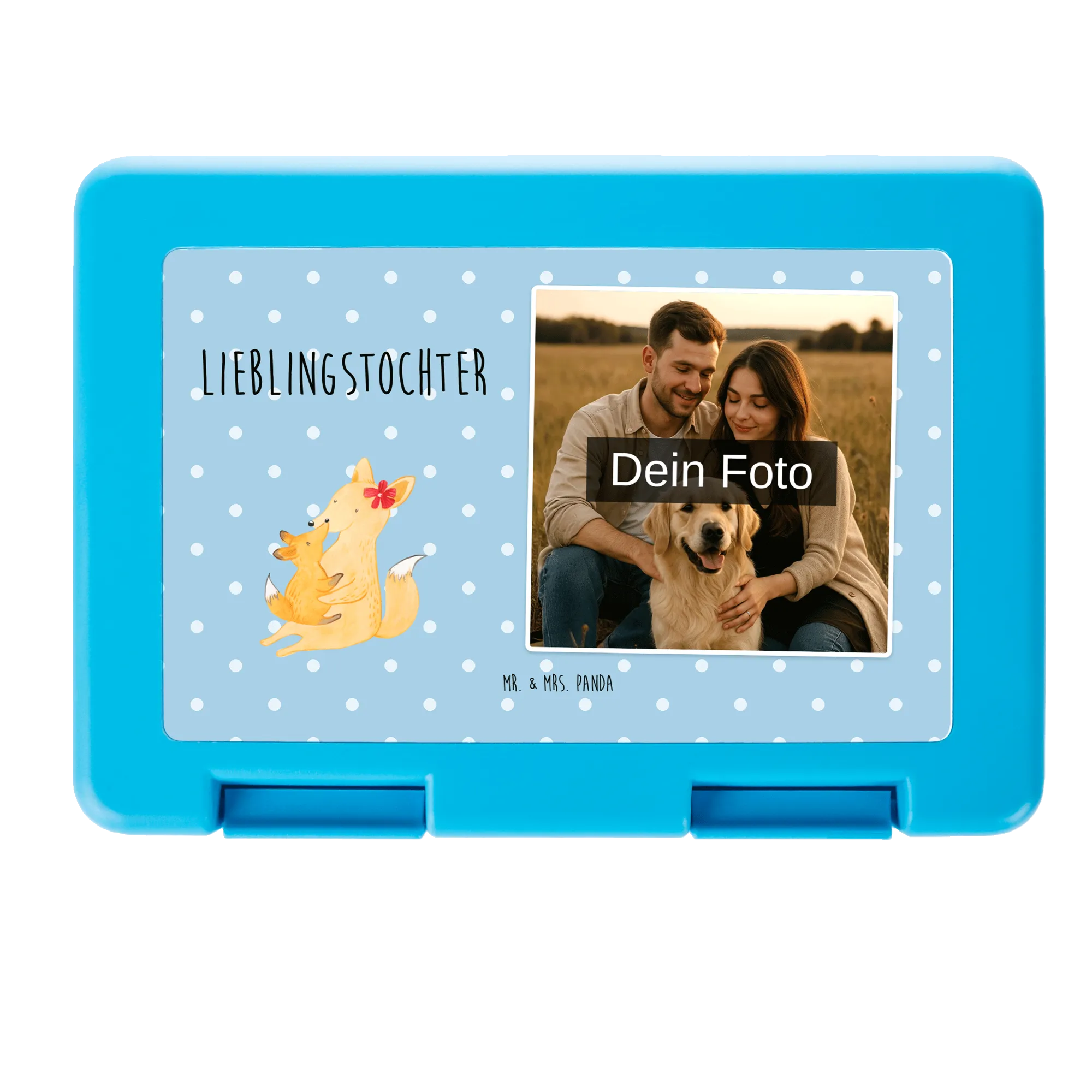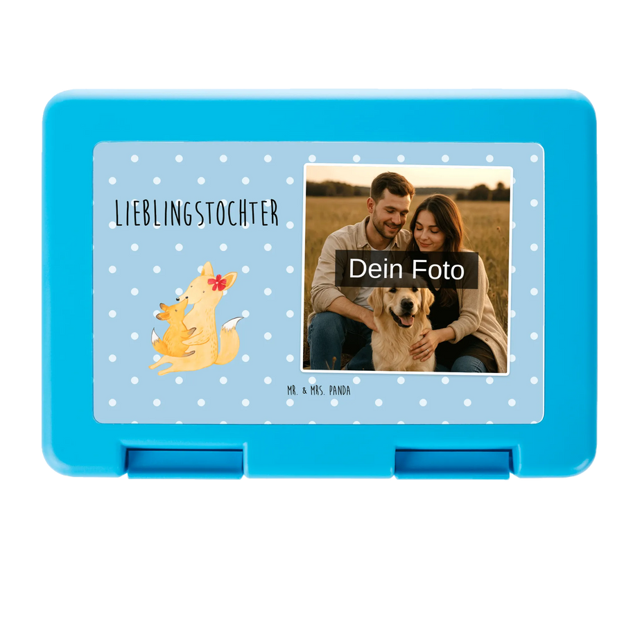Personalisierte Foto Brotdose Fuchs Mama - Blau Pastell