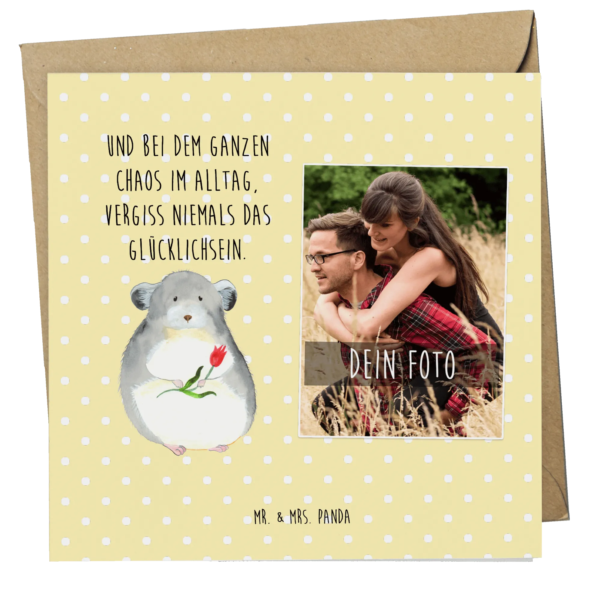 Personalisierte Foto Deluxe Karte Chinchilla Blume - Weiß