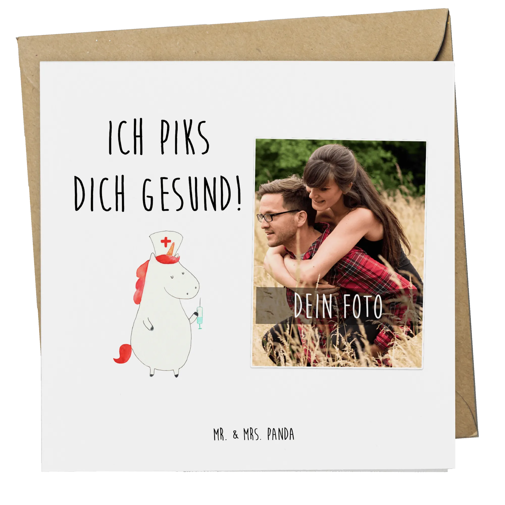 Personalisierte Foto Deluxe Karte Einhorn Krankenschwester
