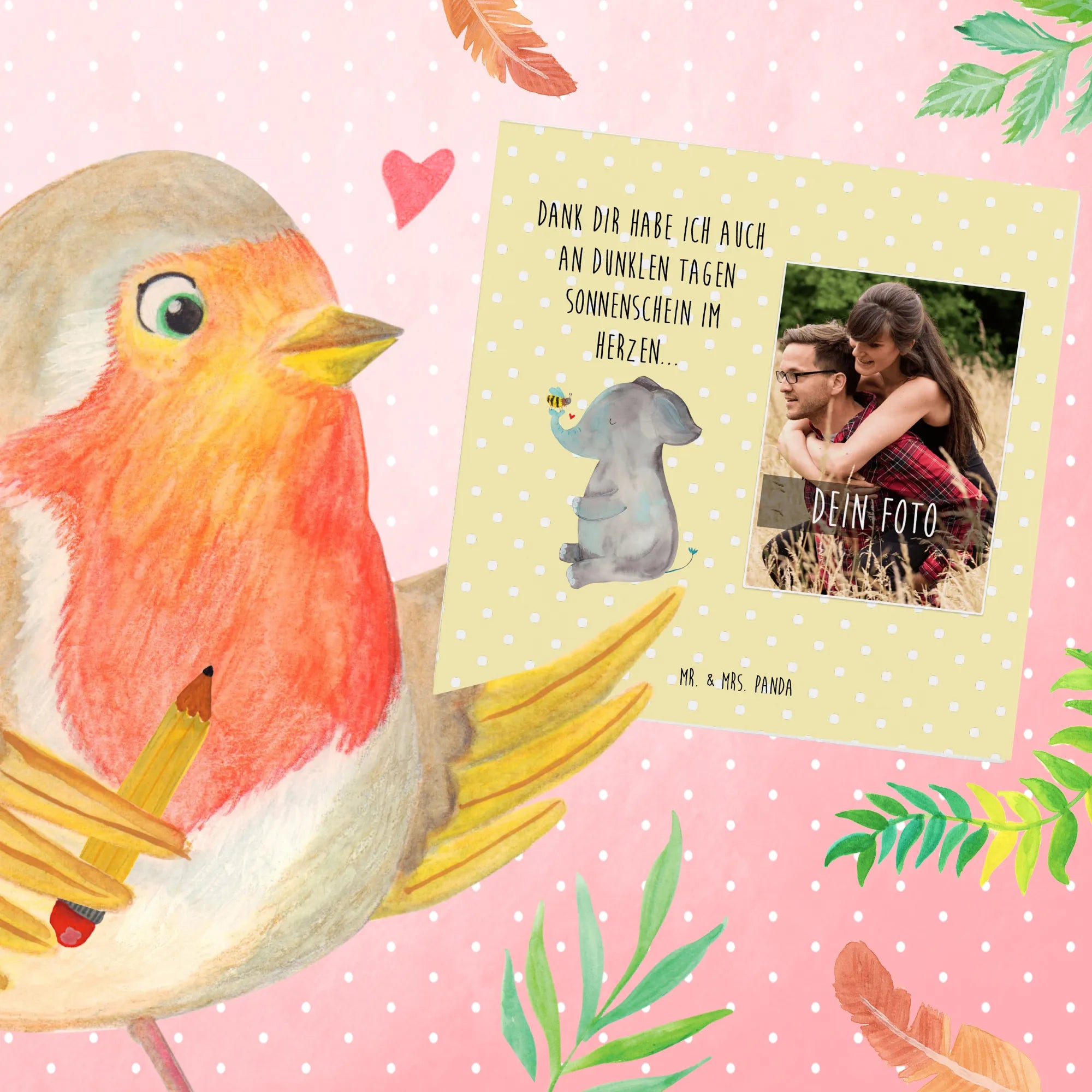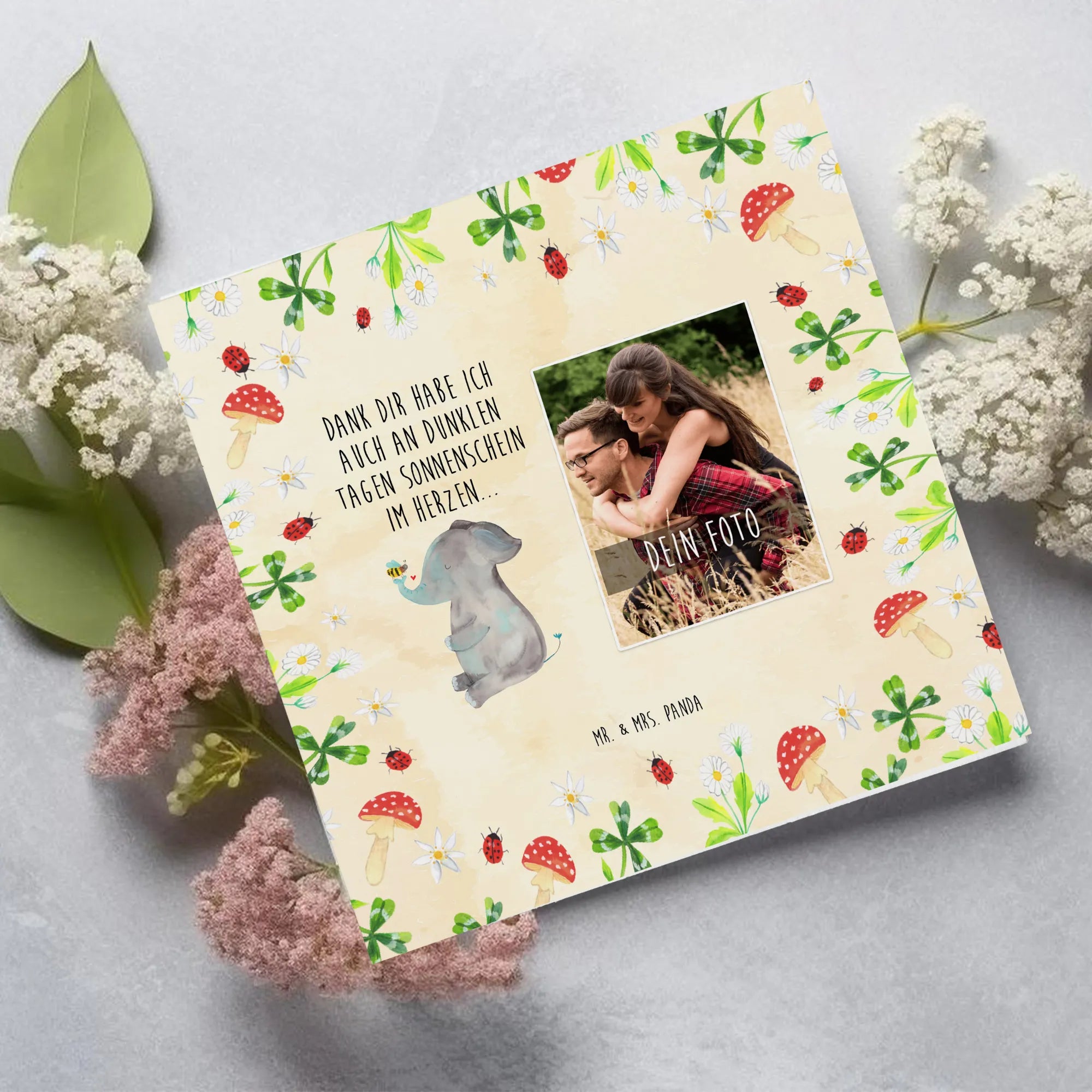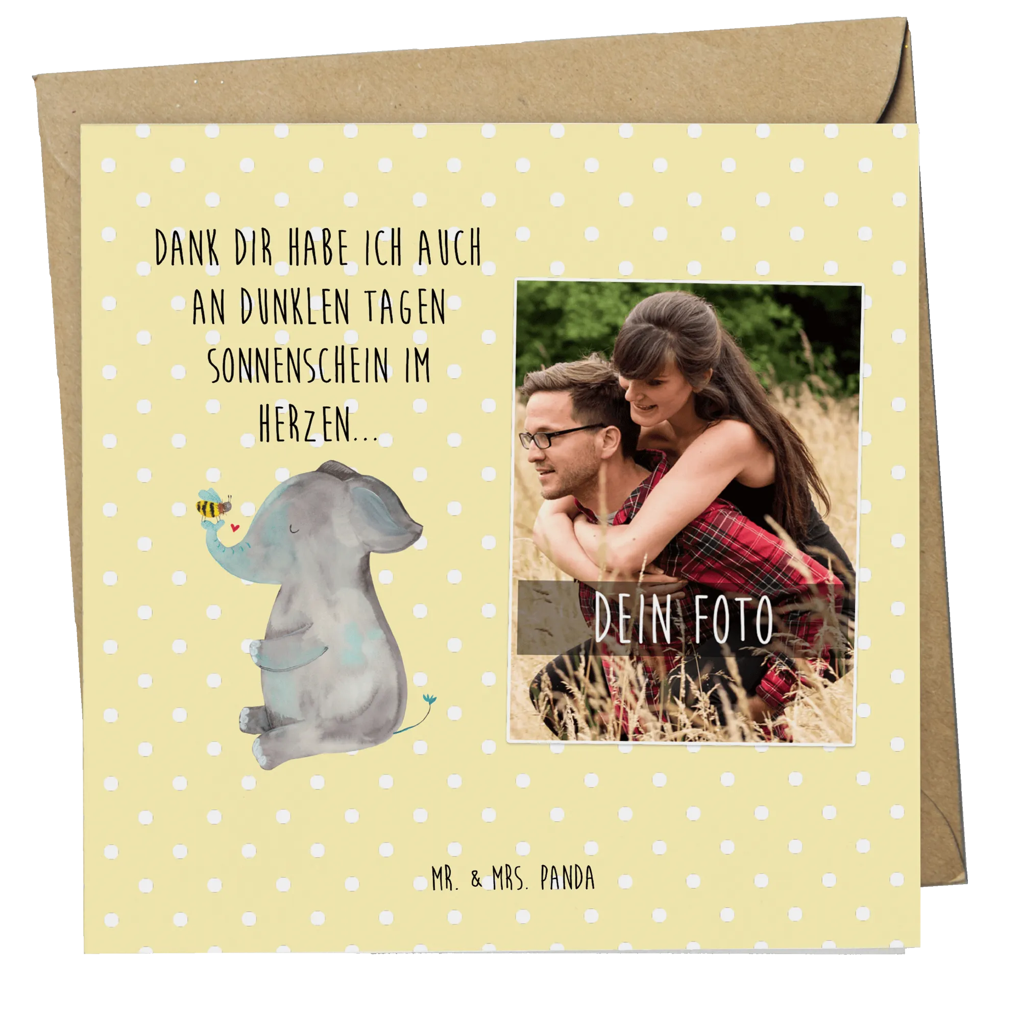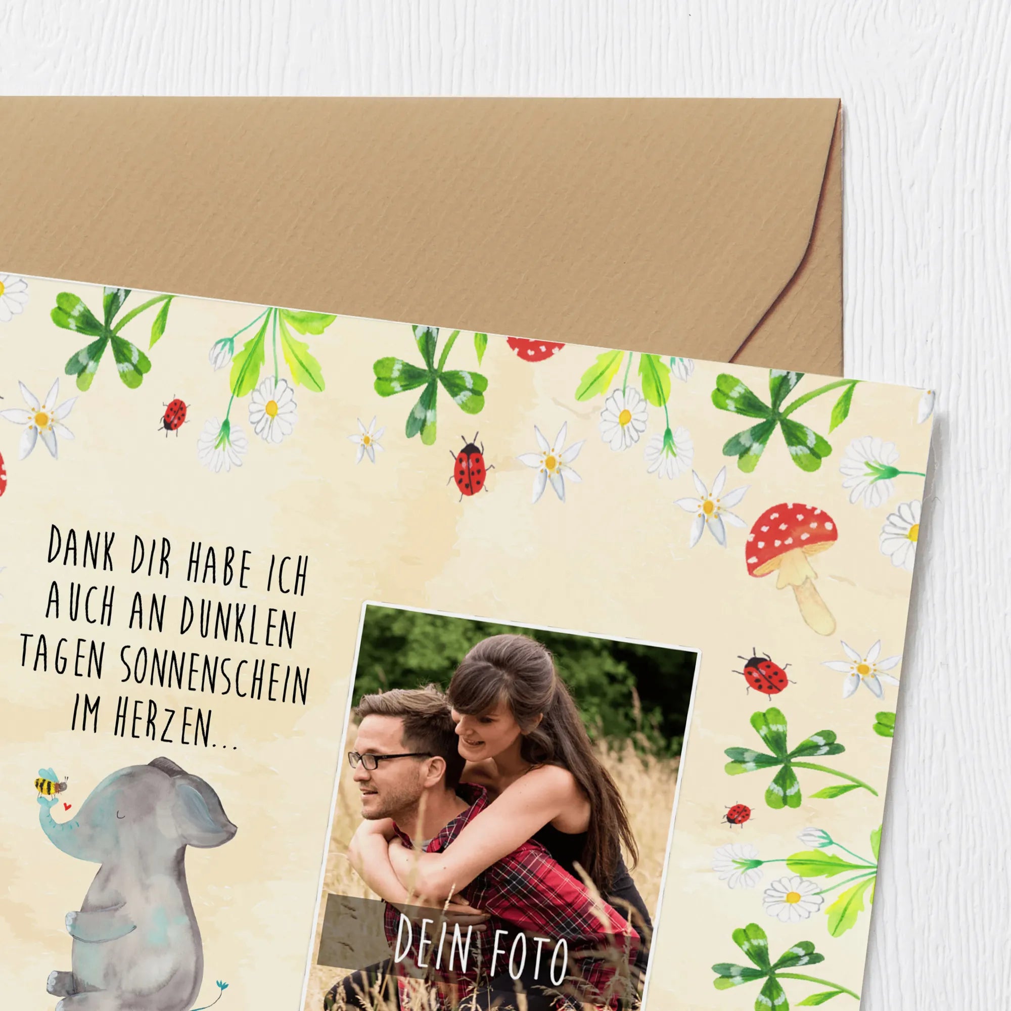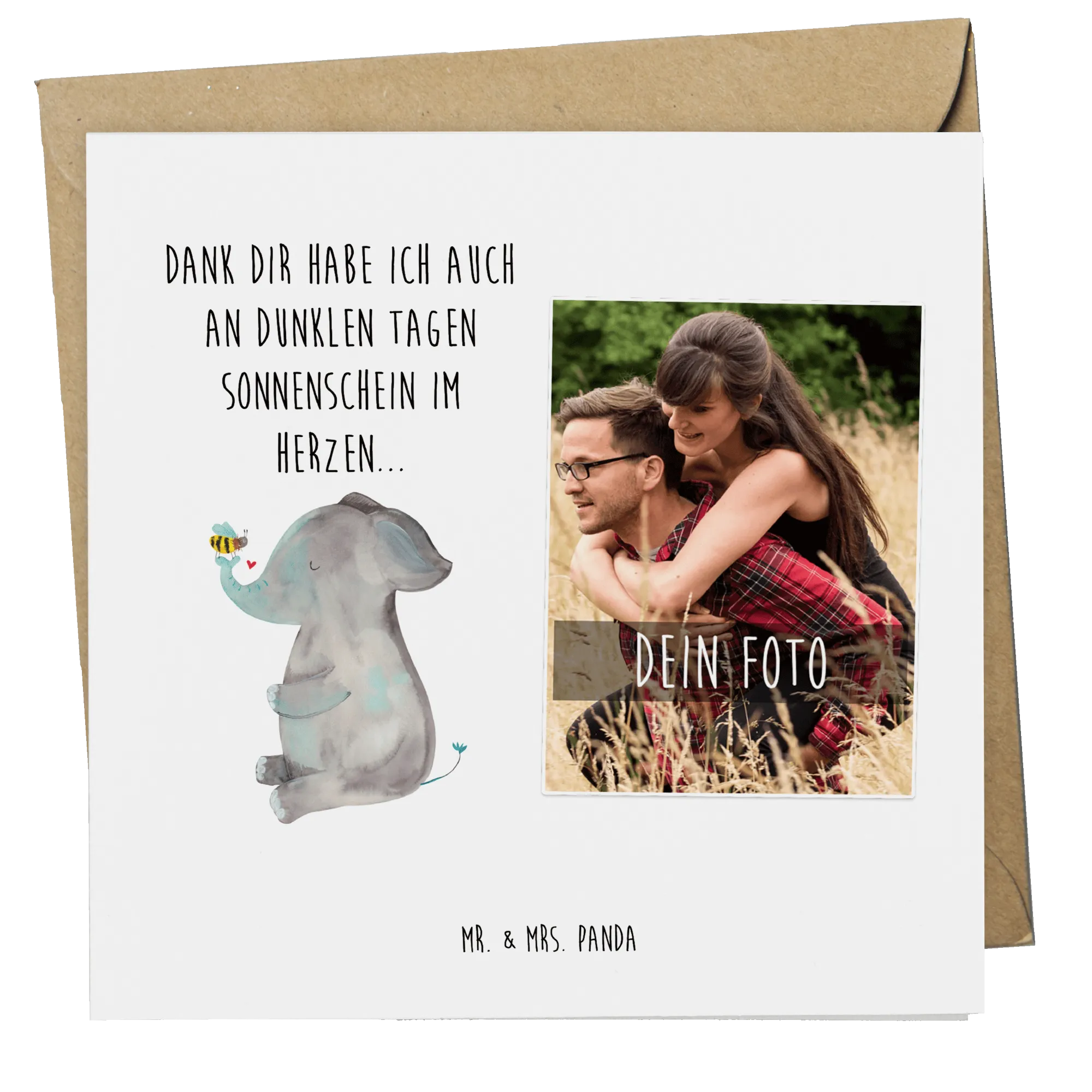 Personalisierte Foto Deluxe Karte Elefant Biene - Weiß