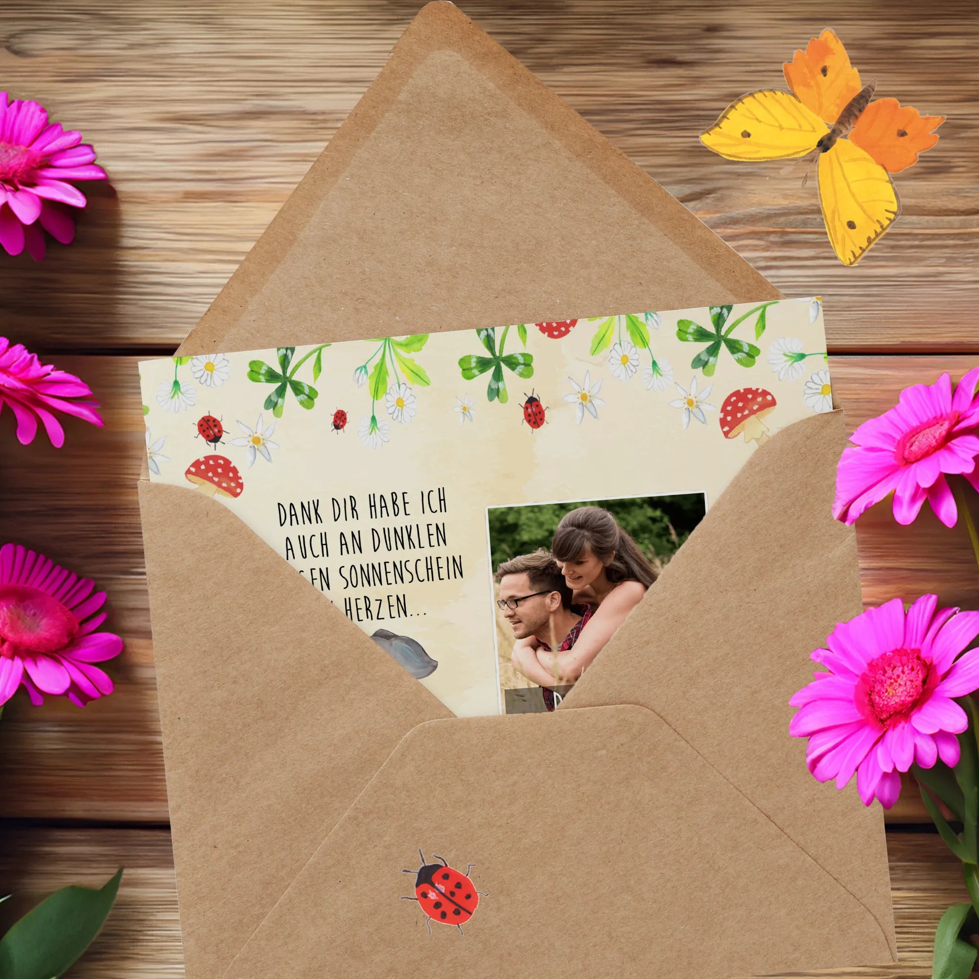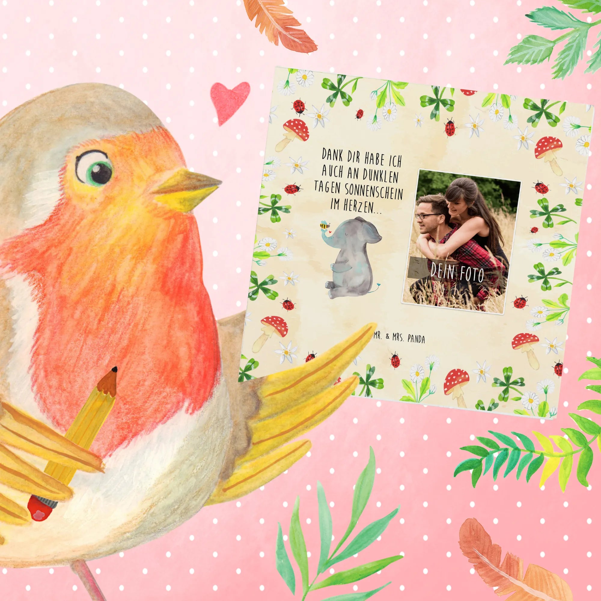 Verschenke Freude mit der Personalisierte Foto Deluxe Karte von Mr. & Mrs. Panda. Diese quadratische Karte in der Größe 140 mm x 140 mm ist auf hochwertigem Karton gedruckt und bietet eine matte Oberfläche zum individuellen Beschriften. Dein persönliches Foto, in brillanter Auflösung, zusammen mit einem einzigartigen Spruch sorgt für bleibende Erinnerungen. Der Umschlag in edler Kartonoptik ist das i-Tüpfelchen. Geeignet für besondere Momente wie Geburtstage oder Hochzeitsfeiern.