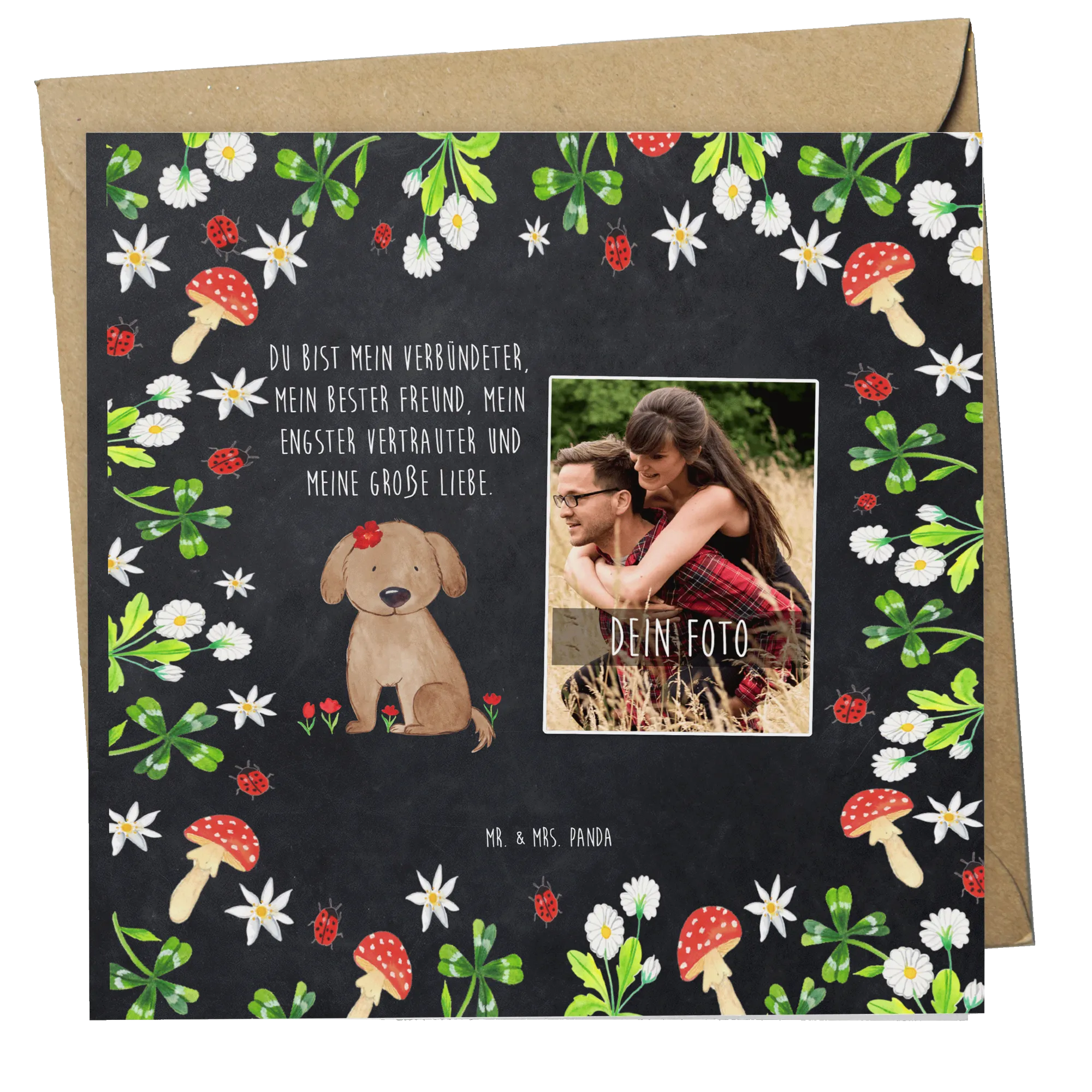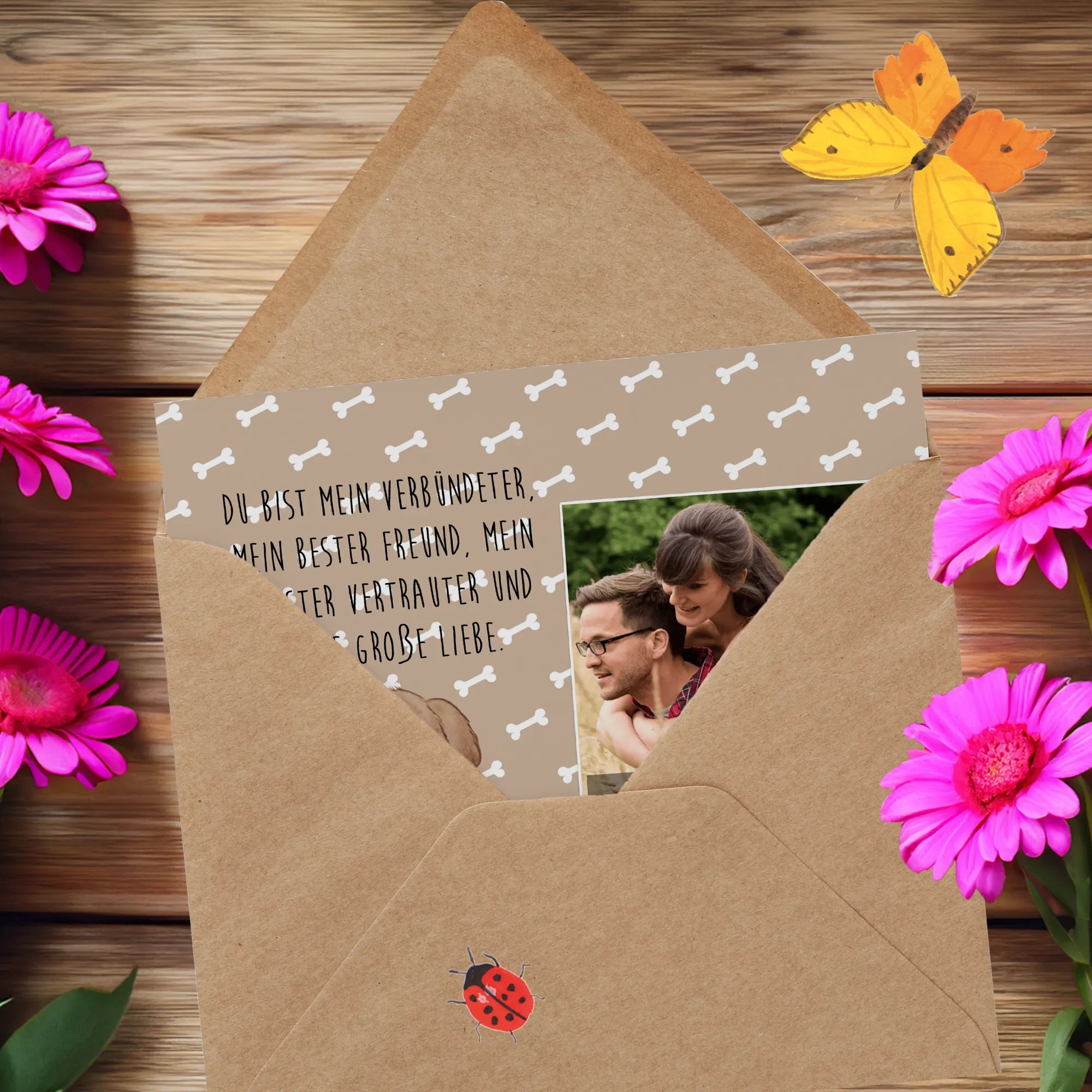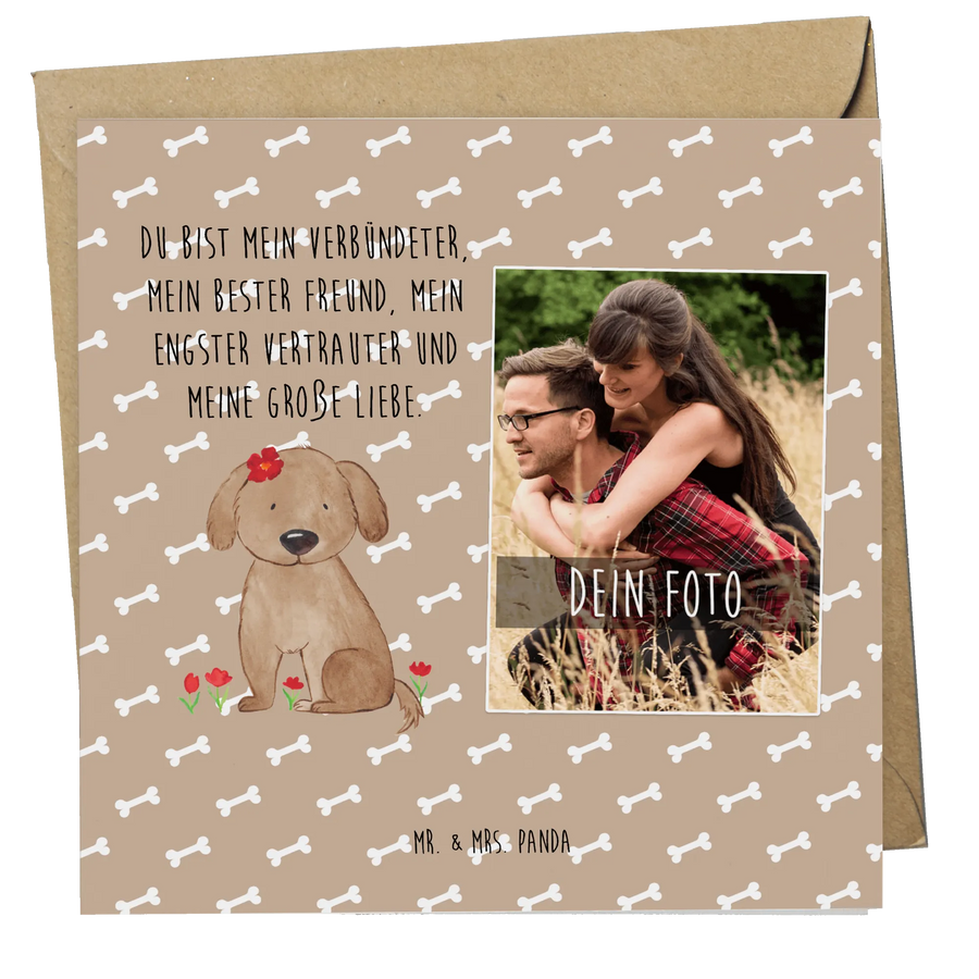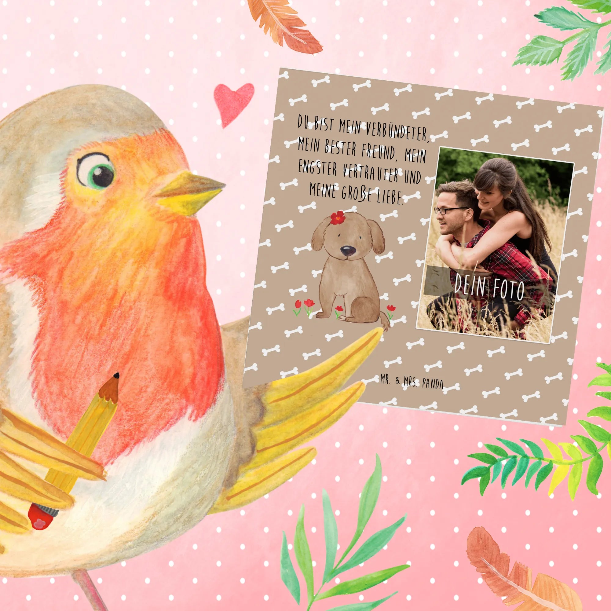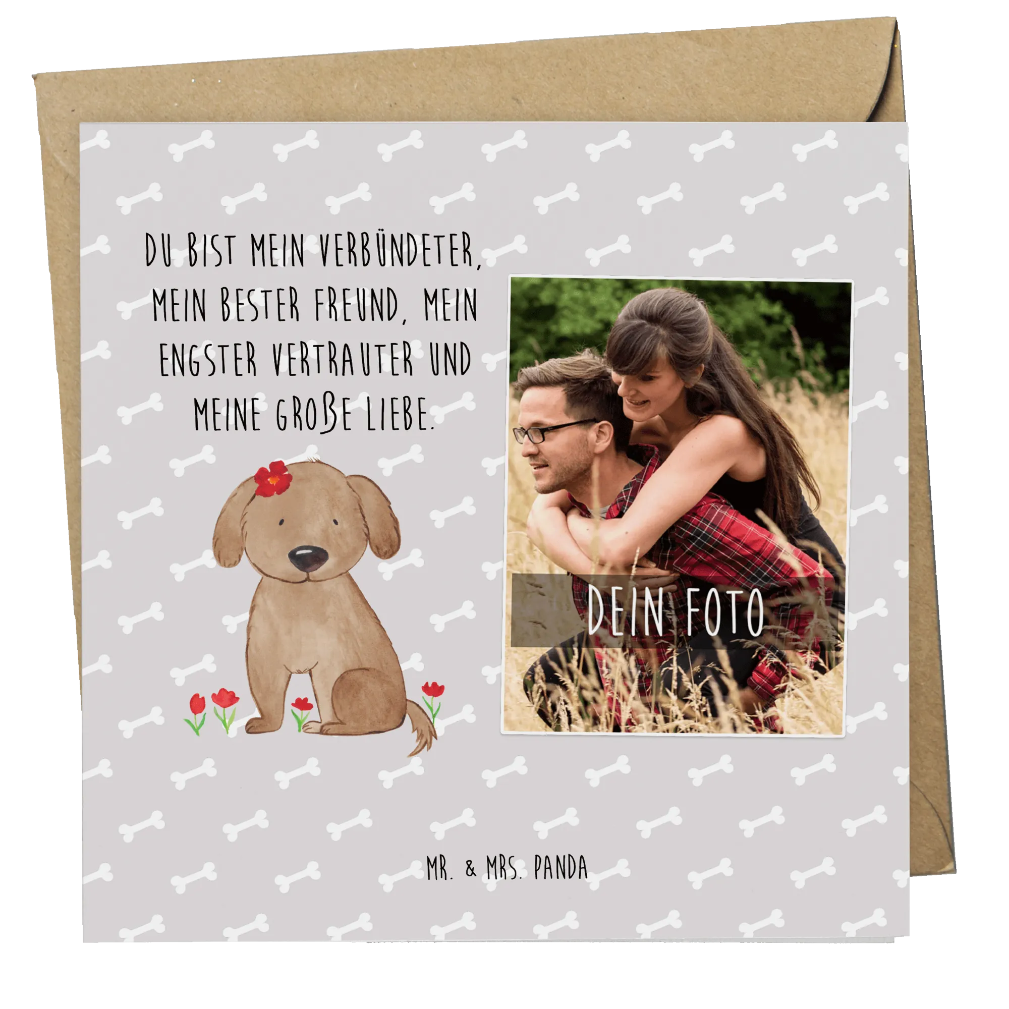 Personalisierte Foto Deluxe Karte „Hund Hundedame“ – eine zuckersüße Hundedame mit Blume und ein berührender Spruch: „Du bist mein Verbündeter, mein bester Freund, mein engster Vertrauter und meine große Liebe.“ Diese Karte aus der Hunde Kollektion von Mr. & Mrs. Panda verbindet handgezeichnete Aquarell-Illustration mit deinem persönlichen Foto und macht jeden Anlass zu etwas ganz Besonderem. 🐶🌸